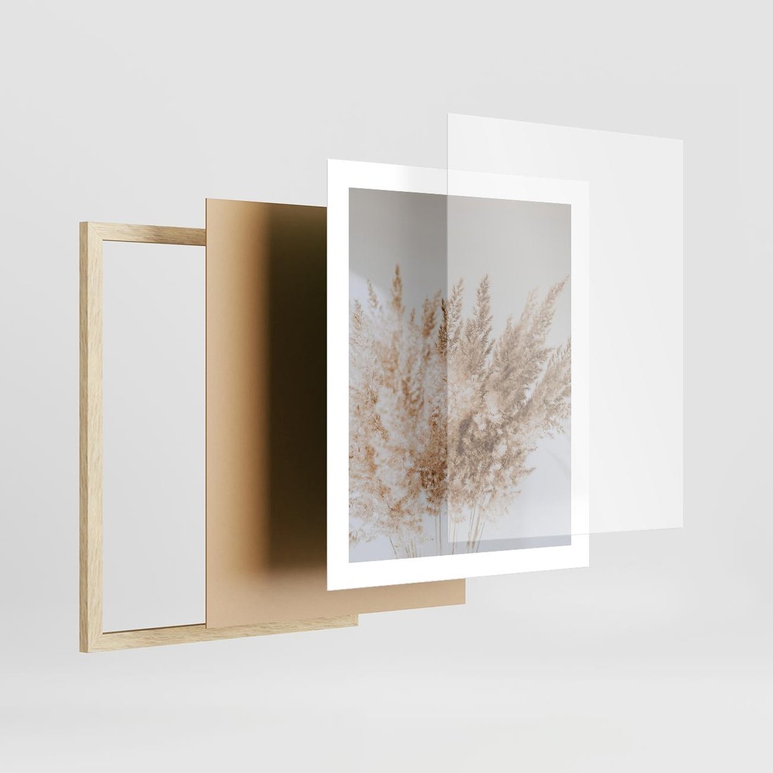 Plakat w ramie 40x50 - Boho Urok Traw Pampasowych - suche trawy, pampas - rama drewno