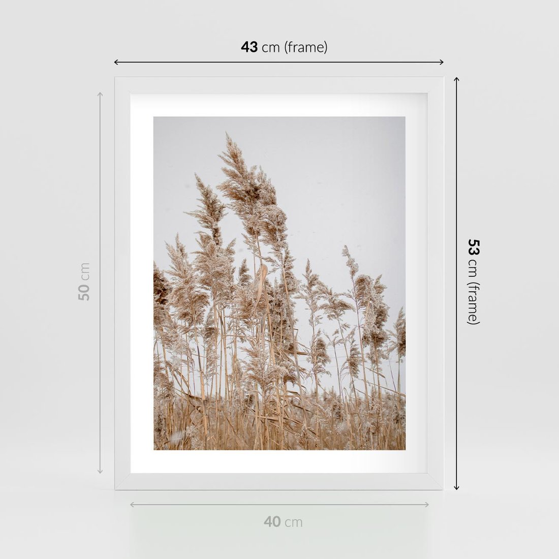Plakat w ramie 40x50 - Boho Urok - trawy, pampas - rama biała