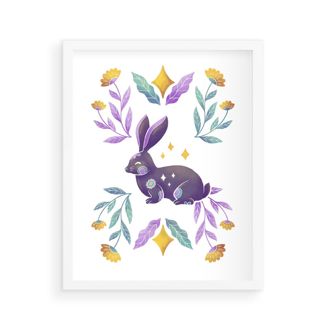 Plakat w ramie 40x50 - Boho Wiatr - boho plakat, królik - rama biała