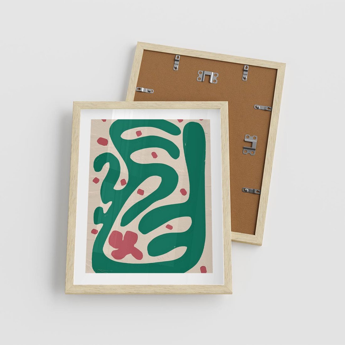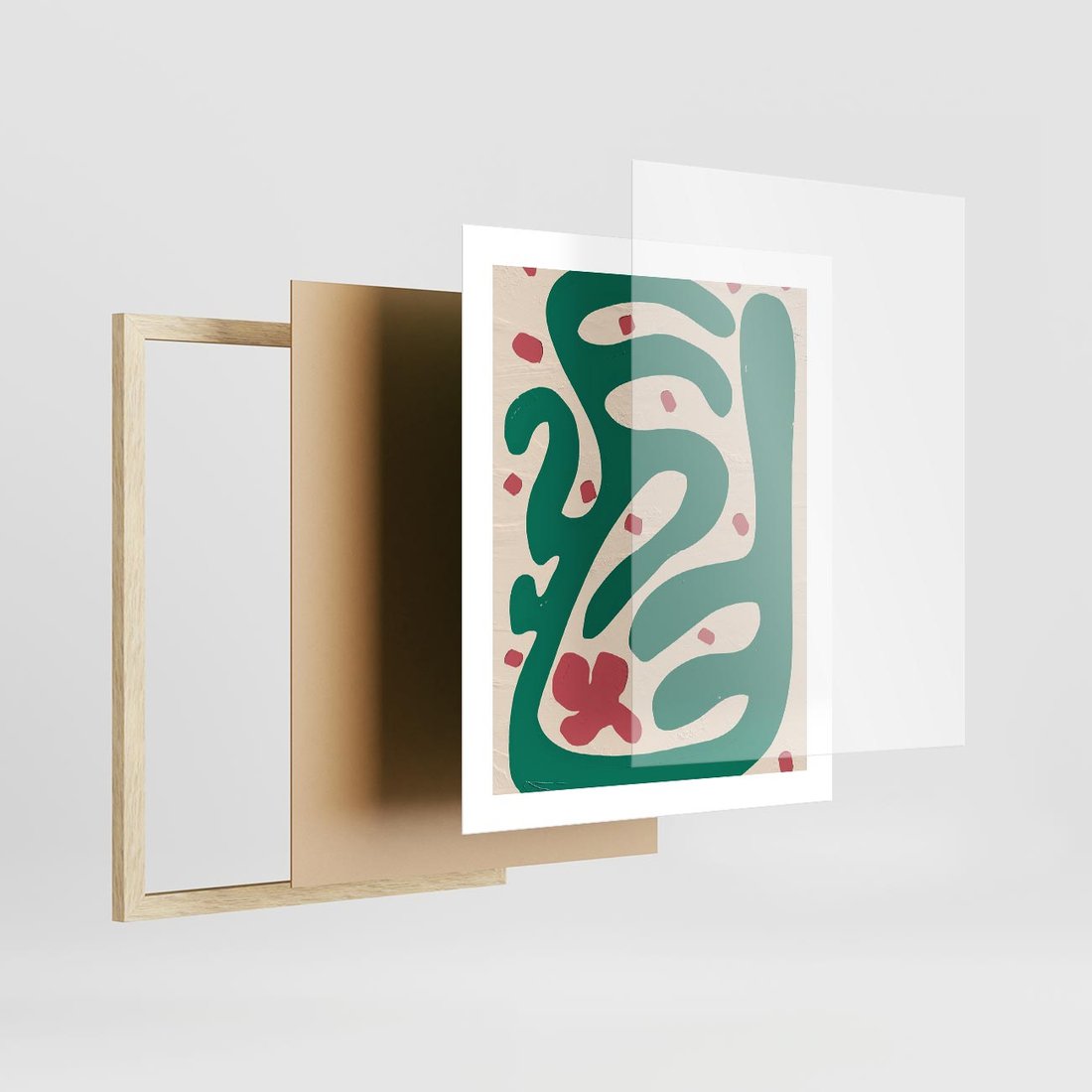 Ten abstrakcyjny obraz w formie plakatu zachwyca nieprzewidywalnymi i dziwnymi kształtami. To wyjątkowe dzieło sztuki, które pobudza wyobraźnię i stanowi unikalną ozdobę dla każdego wnętrza.