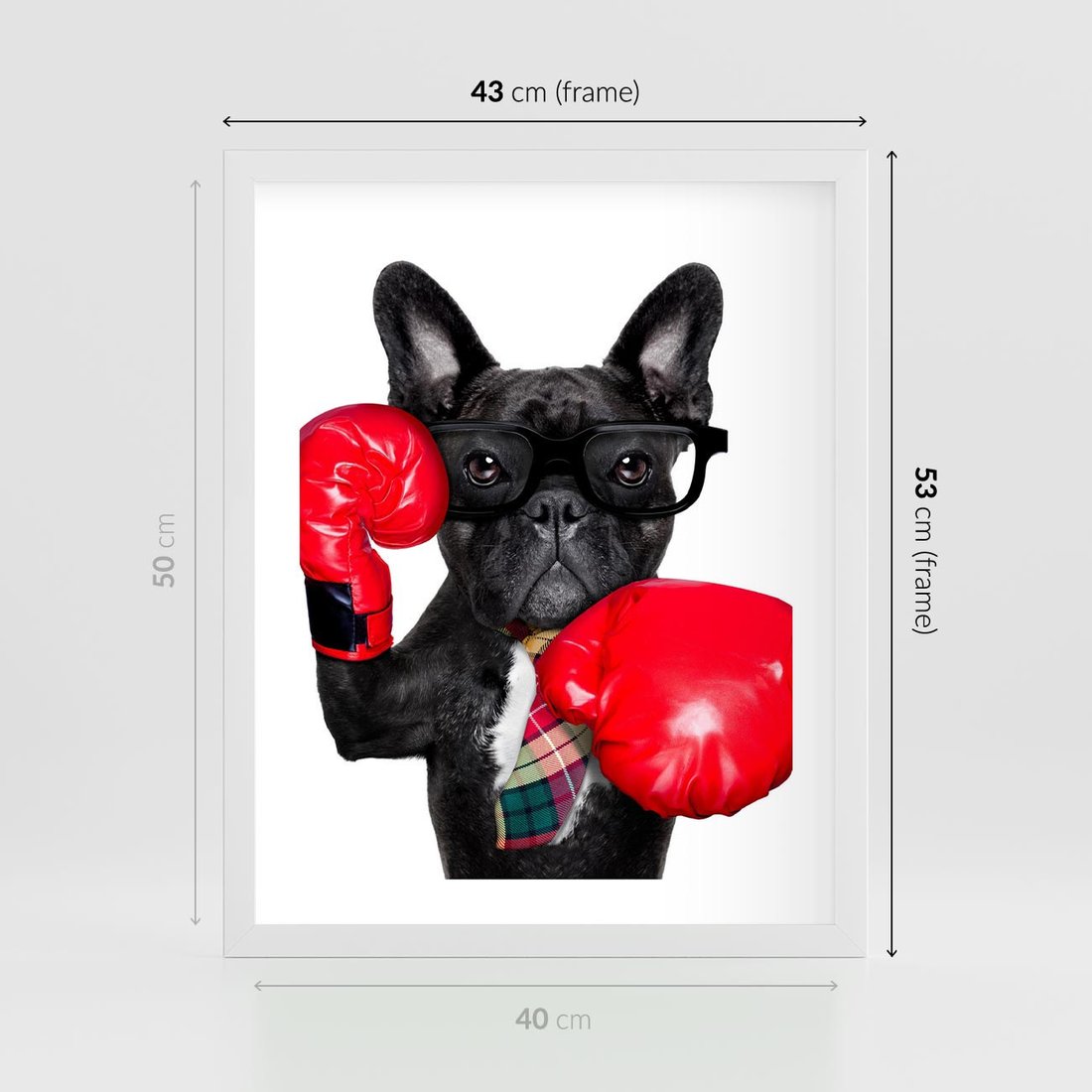 Plakat w ramie 40x50 - Boksujący mops - pies - boks, mops - rama biała