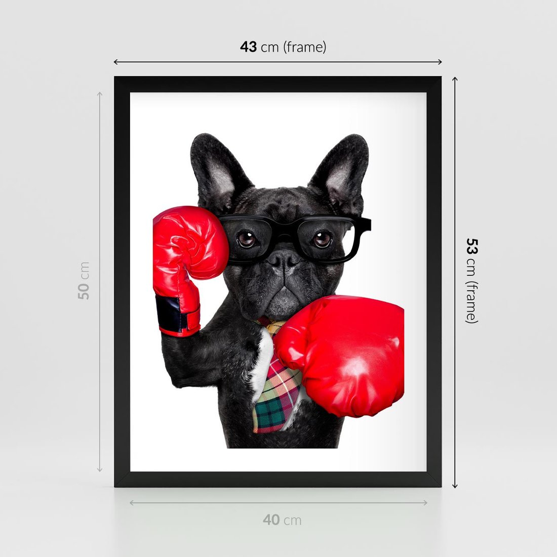 Plakat w ramie 40x50 - Boksujący mops - pies - boks, mops - rama czarna