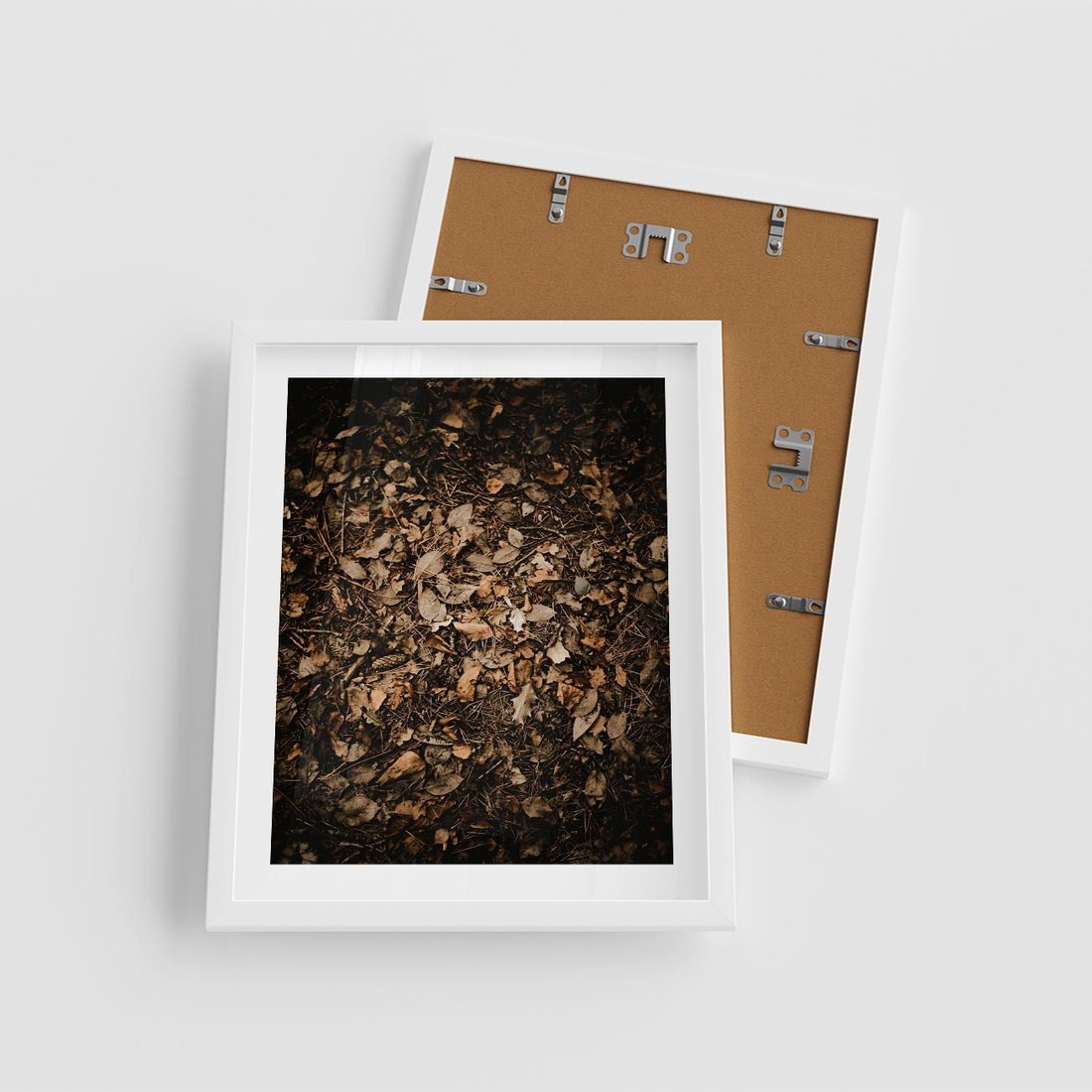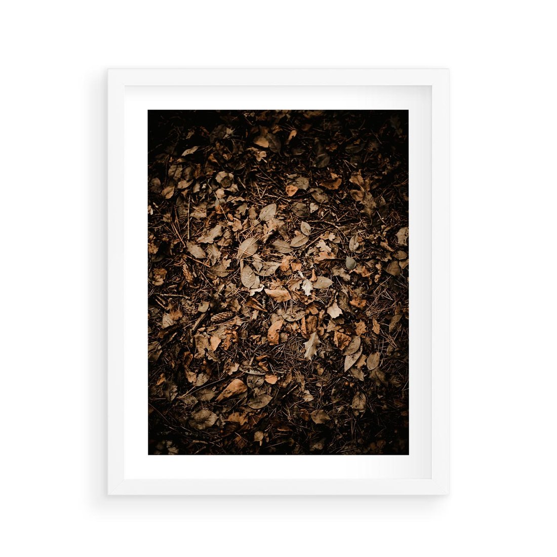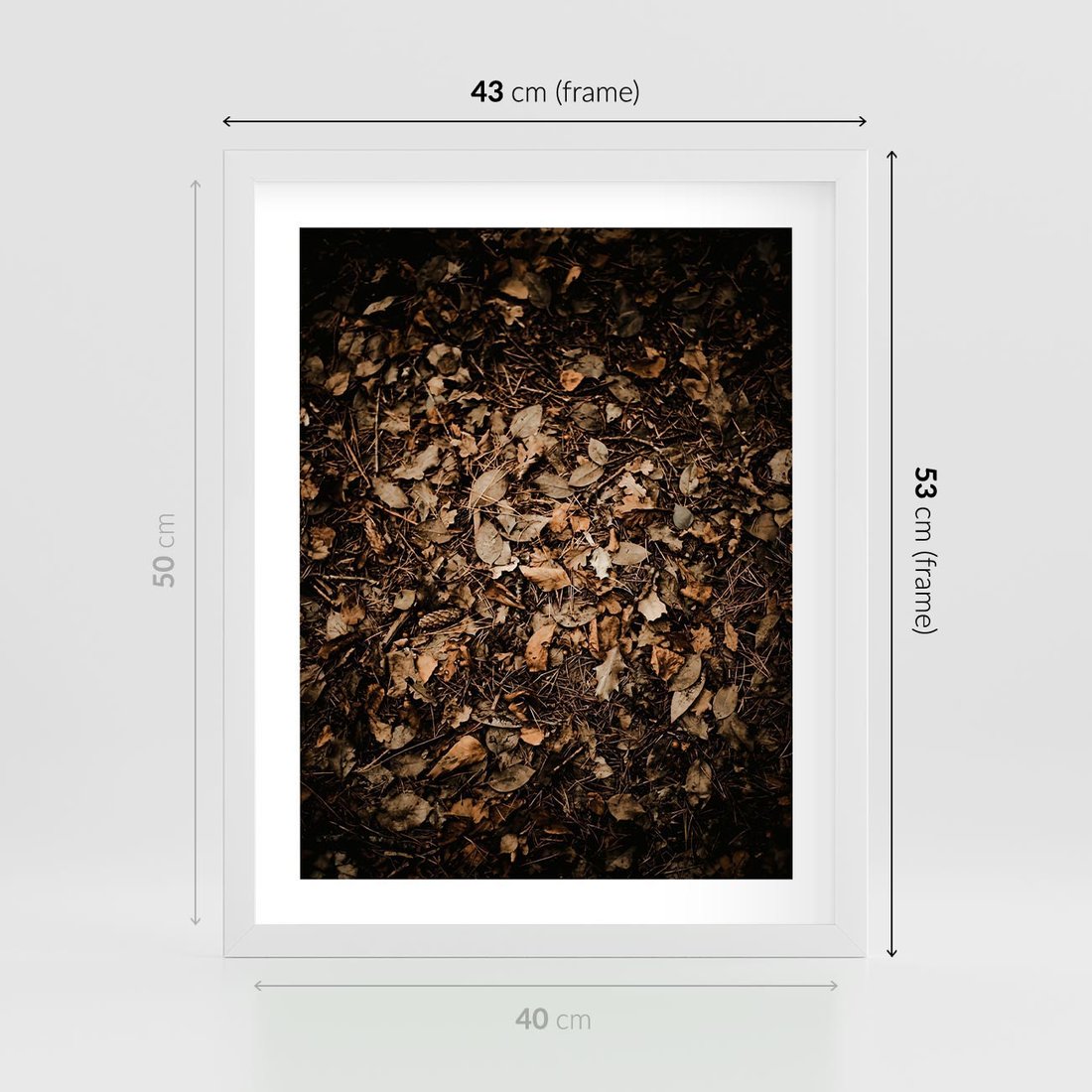 Plakat w ramie 40x50 - Brązowe Liście w Scenerii - suche liście jesień brąz - rama biała
