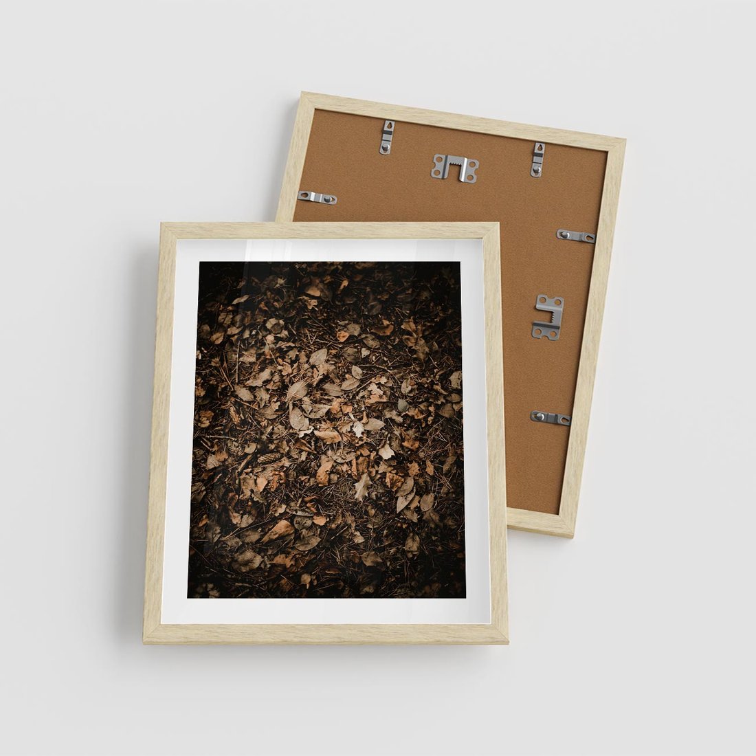 Plakat w ramie 40x50 - Brązowe Liście w Scenerii - suche liście jesień brąz - rama drewno