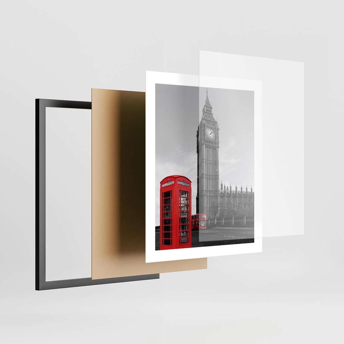 - Plakat w ramie 40x50 - Budka telefoniczna przed Big Benem
