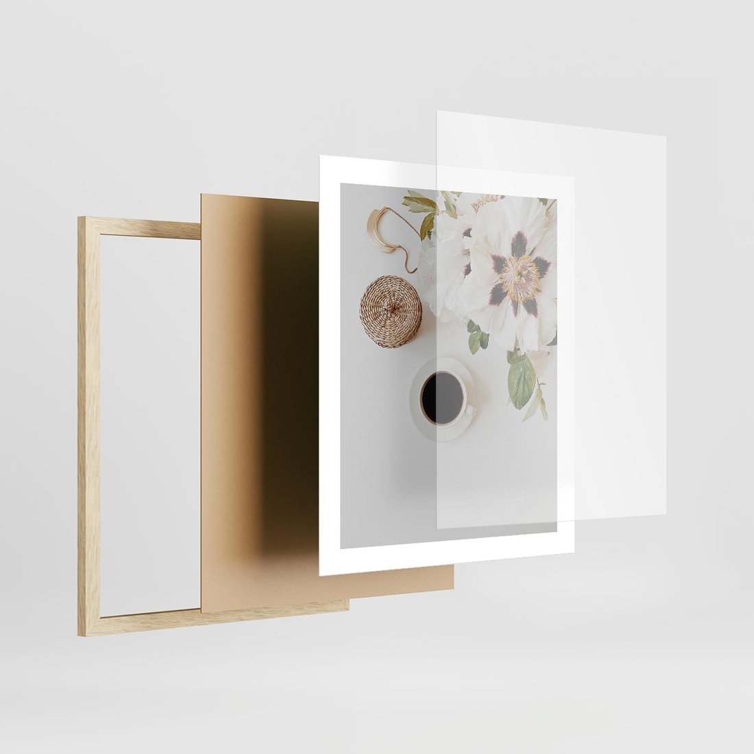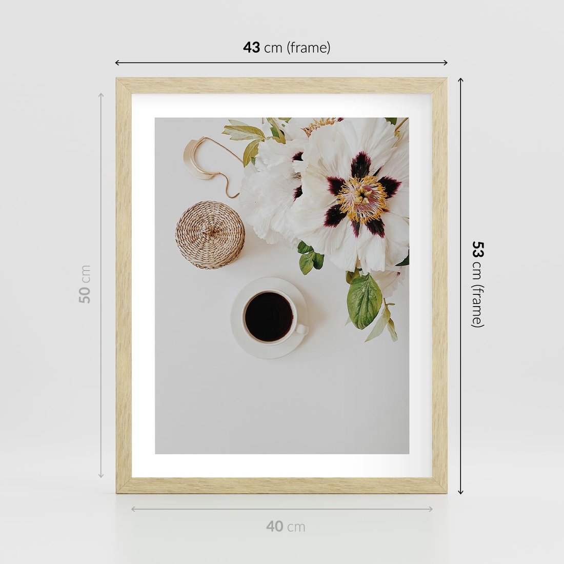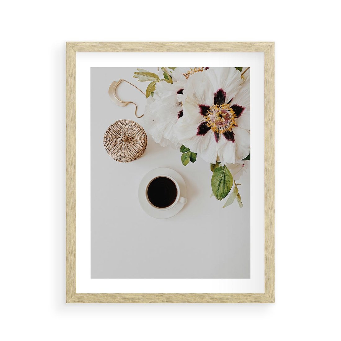 - Plakat w ramie 40x50 - Bukiet Kwiatów i Kawa na Stole