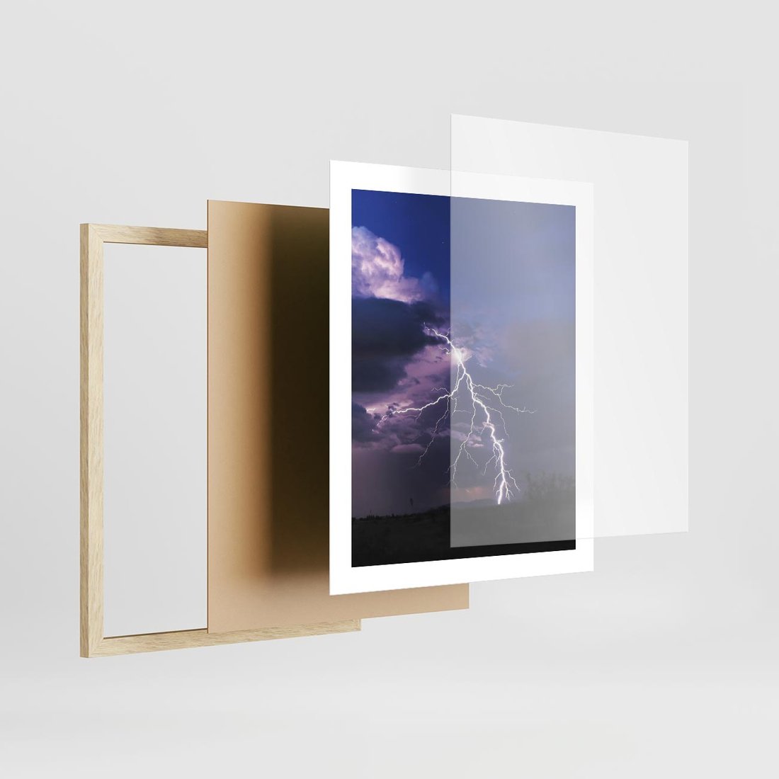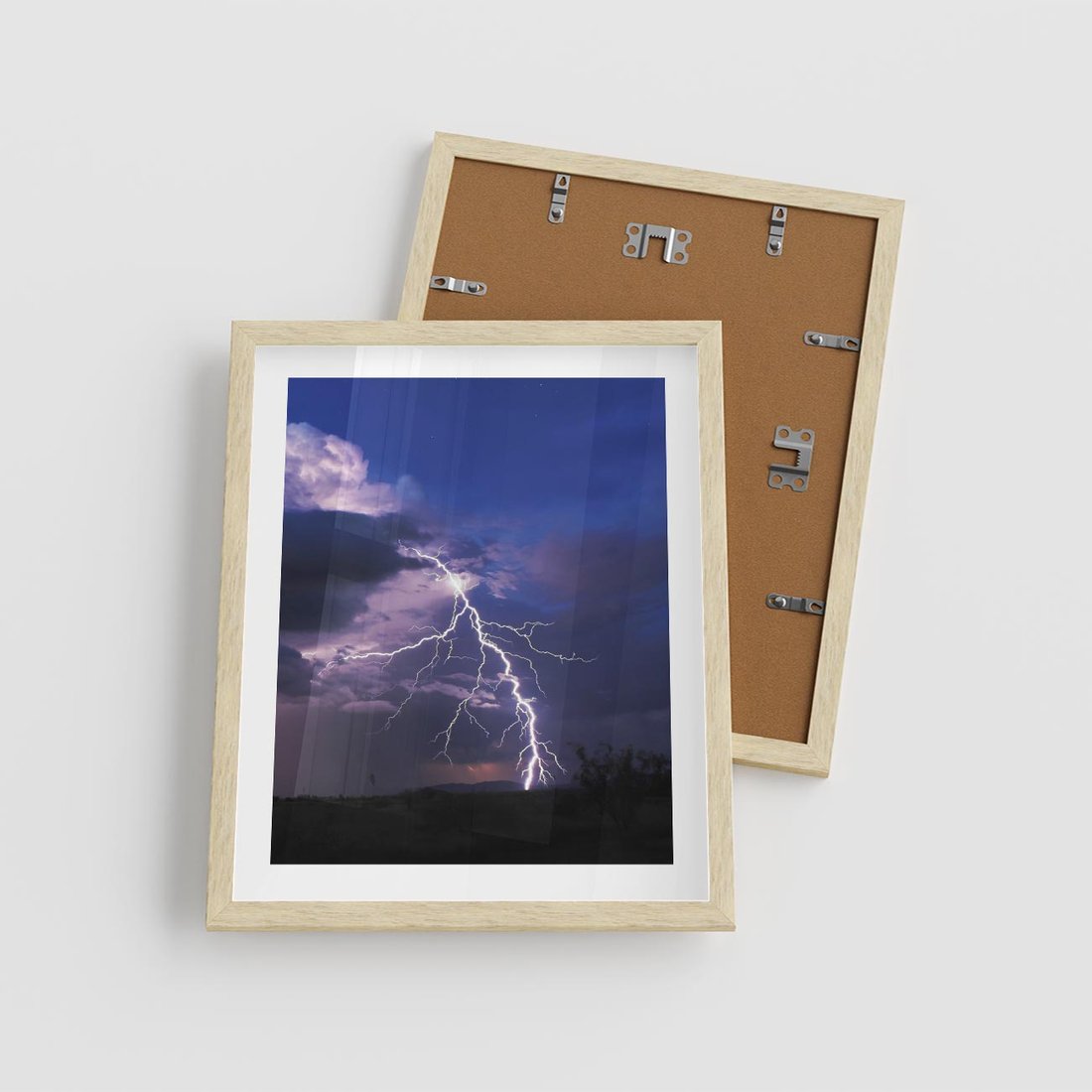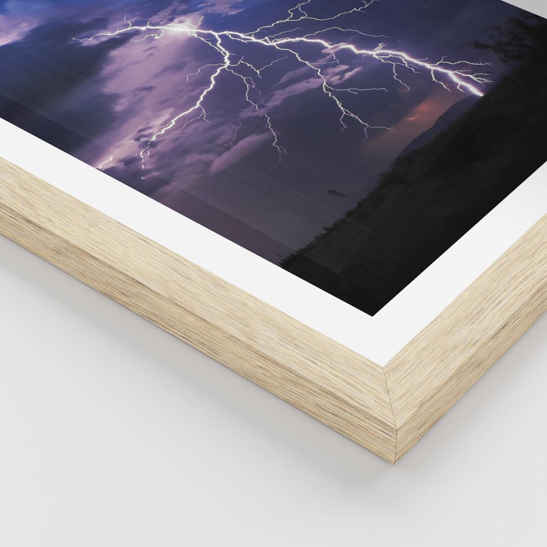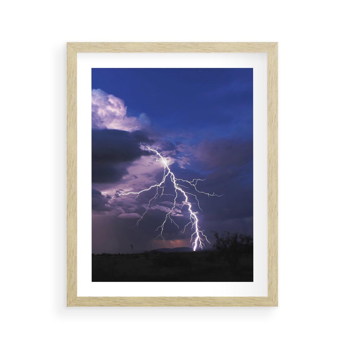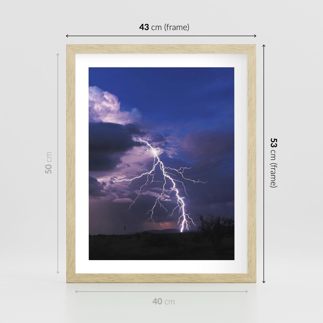Plakat w ramie 40x50 - Burza z błyskawicami nad horyzontem - burza, błyskawica - rama drewno