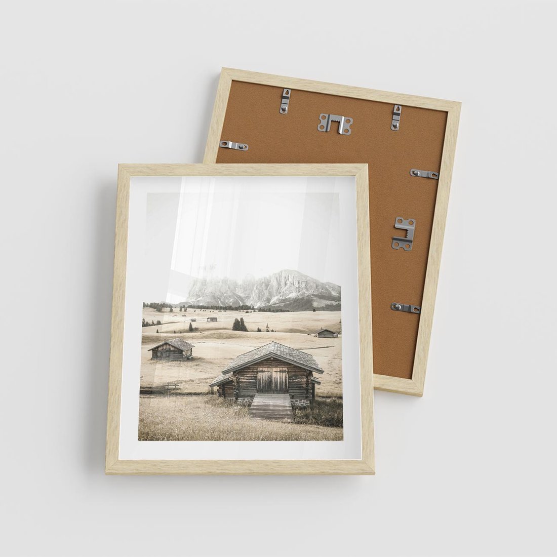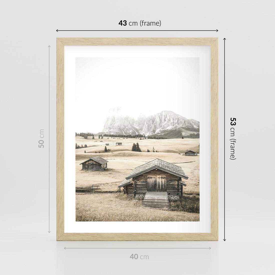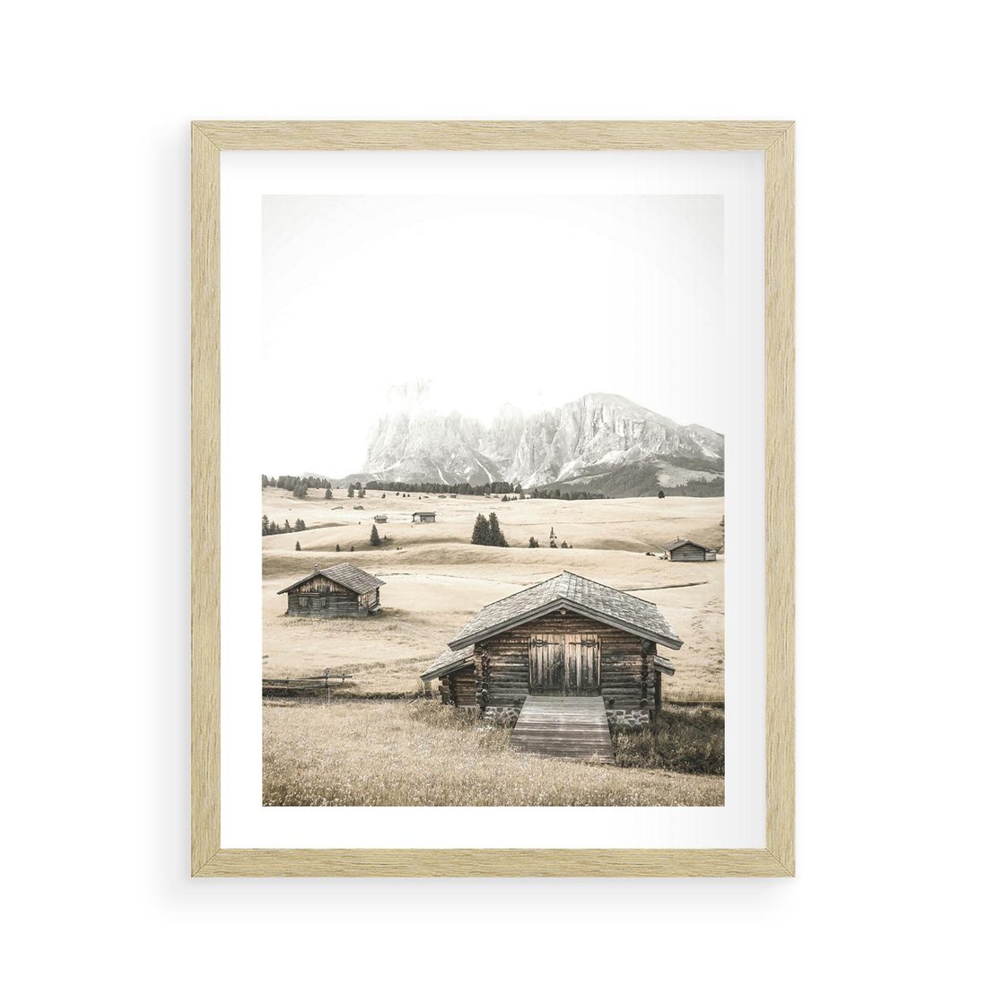 Plakat w ramie 40x50 - Chatka w Górskiej Sepii - domek w górach, chatka - rama drewno