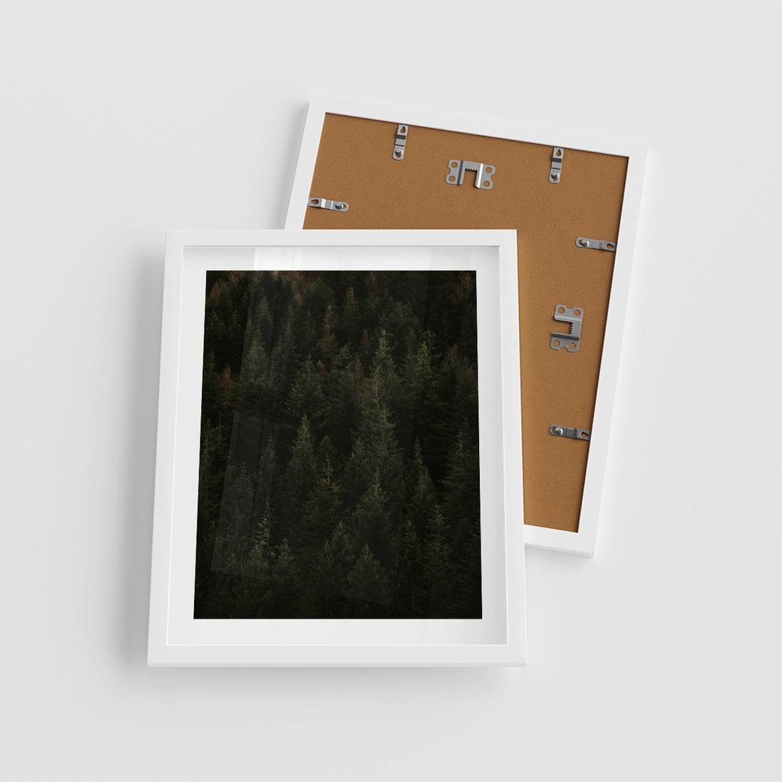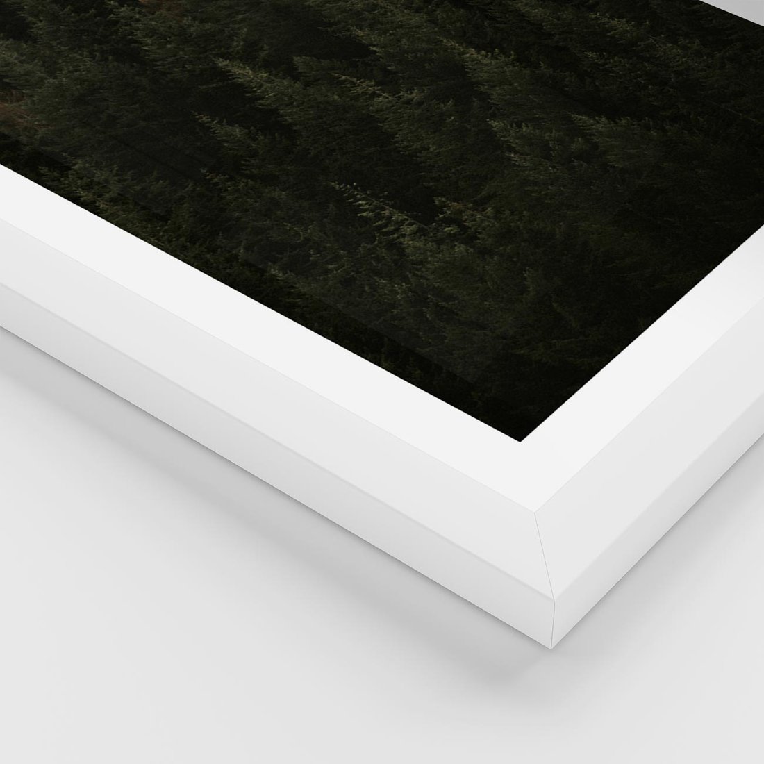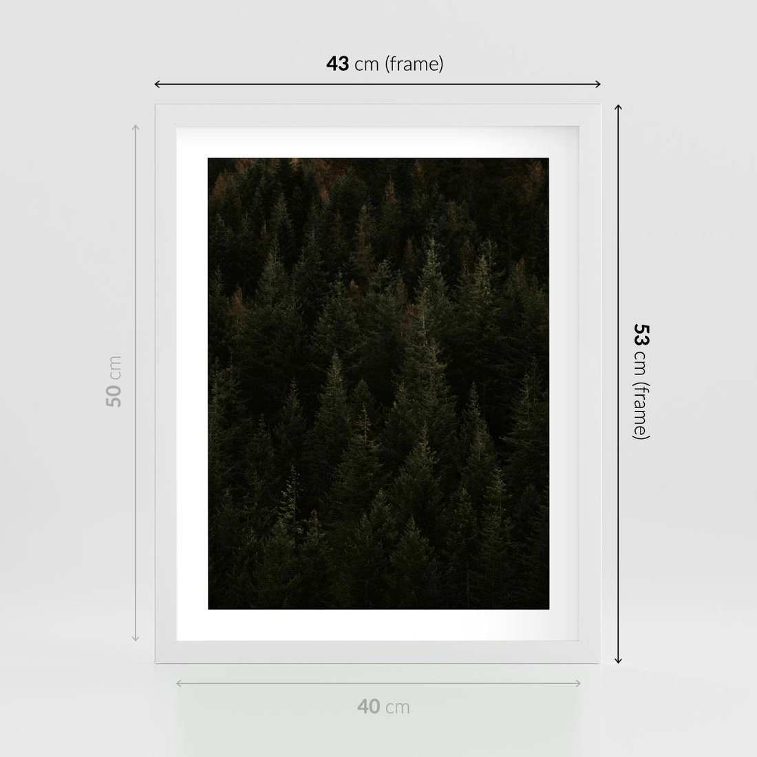Plakat w ramie 40x50 - Ciemny las iglasty - las, iglasty - rama biała