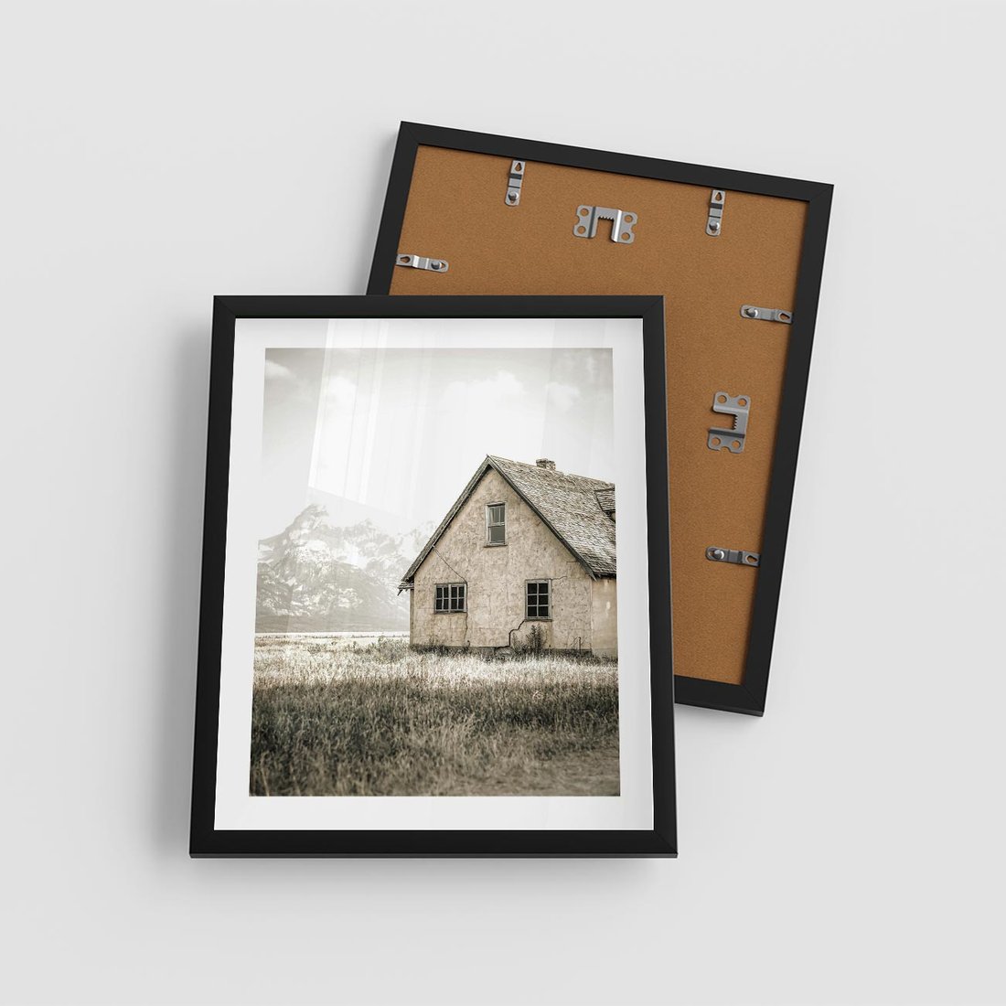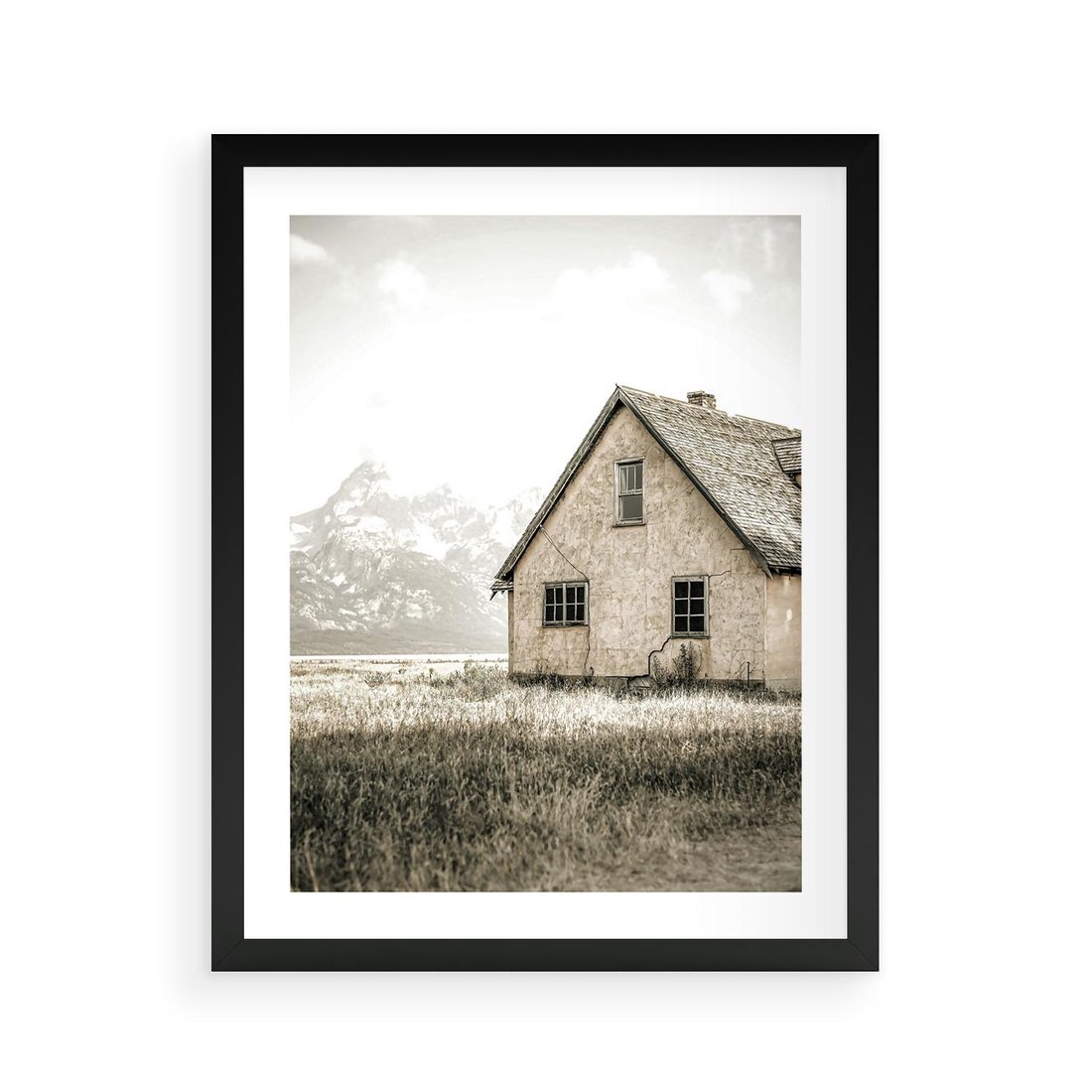 Plakat w ramie 40x50 - Ciepła Atmosfera - dom, stary dom w górach - rama czarna