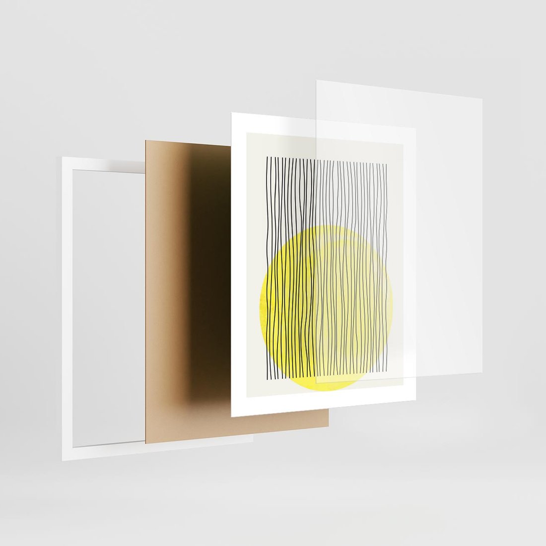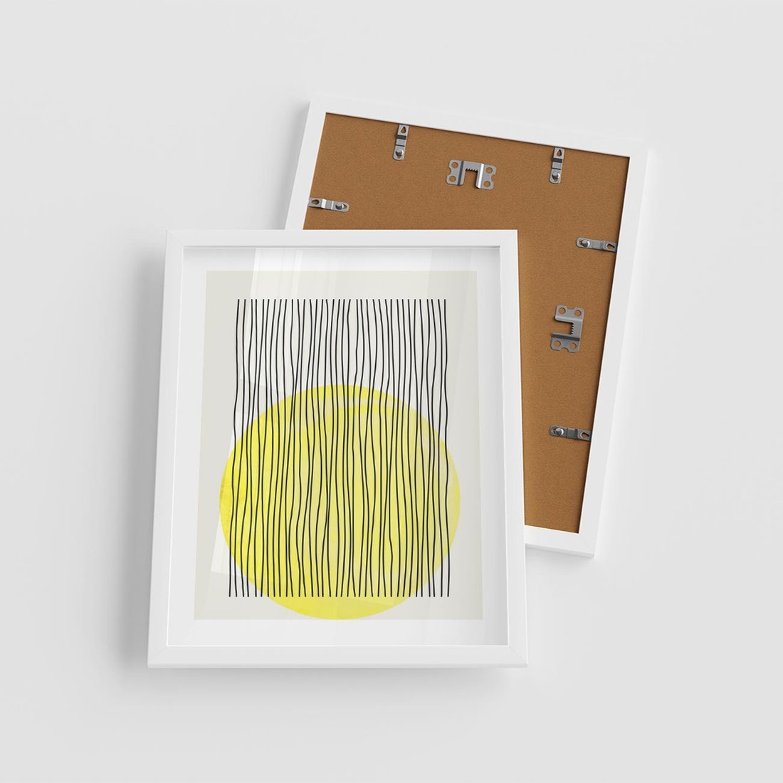 Ten plakat to wyraz minimalistycznego podejścia do sztuki, prezentujący żółte koło w geometrycznym szkicu. To prosty, ale wyrazisty element wprowadza do Twojej przestrzeni harmonię i wyjątkowy akcent artystyczny, idealnie oddający ducha minimalizmu.
