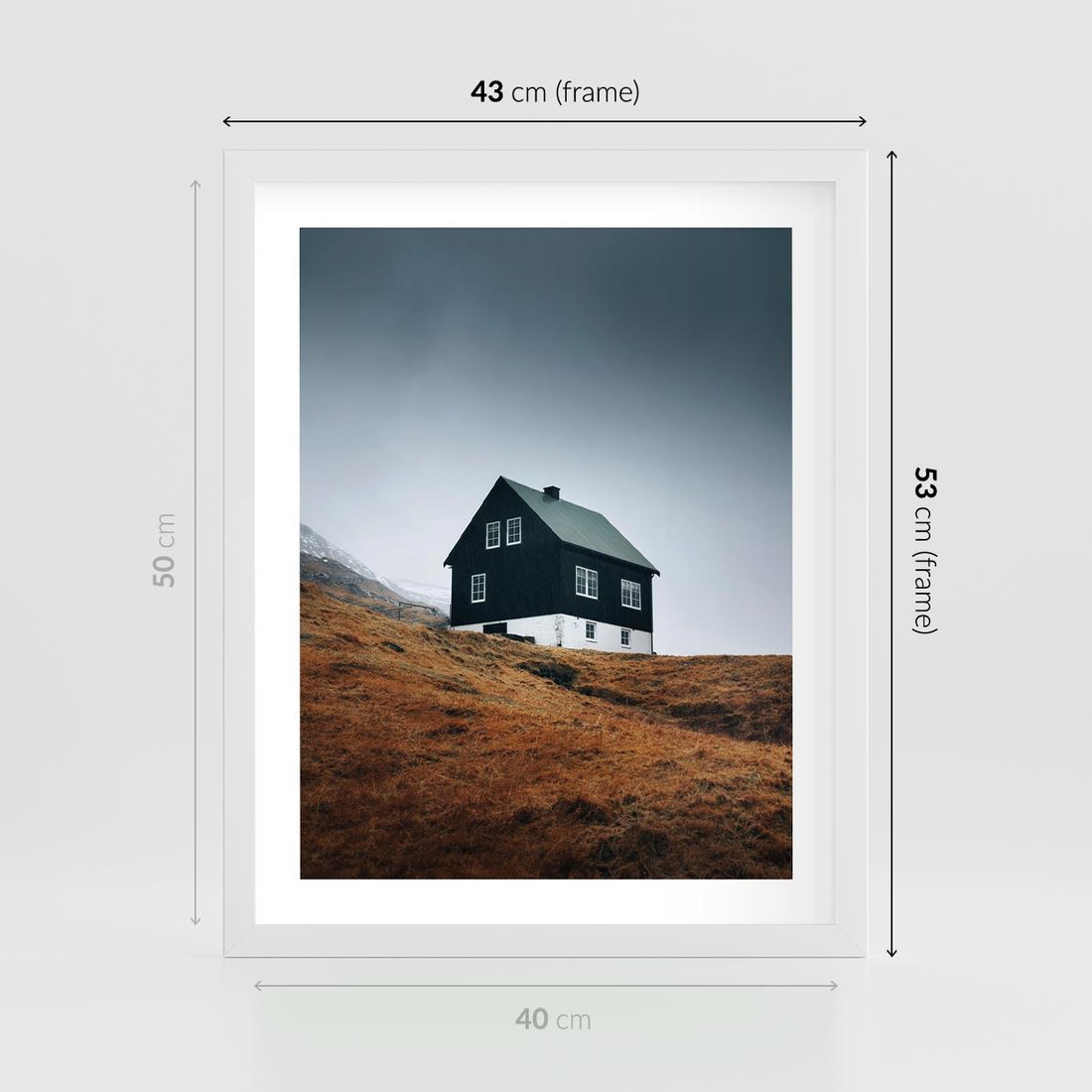 Plakat w ramie 40x50 - Ciepło i Przytulność - skandynawski, domek - rama biała