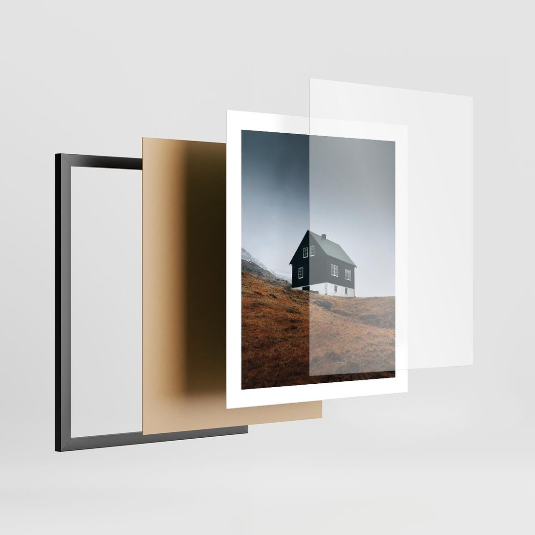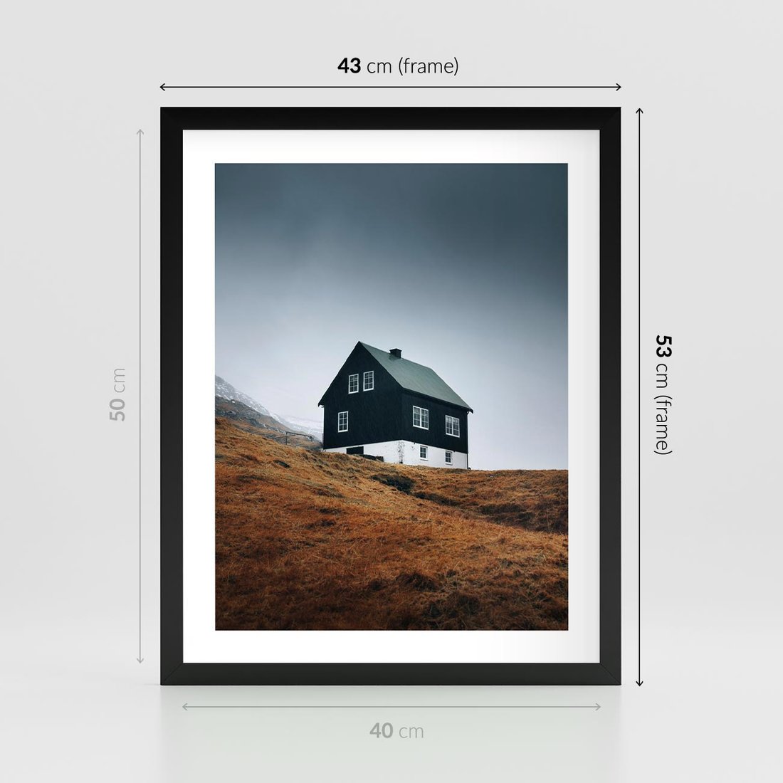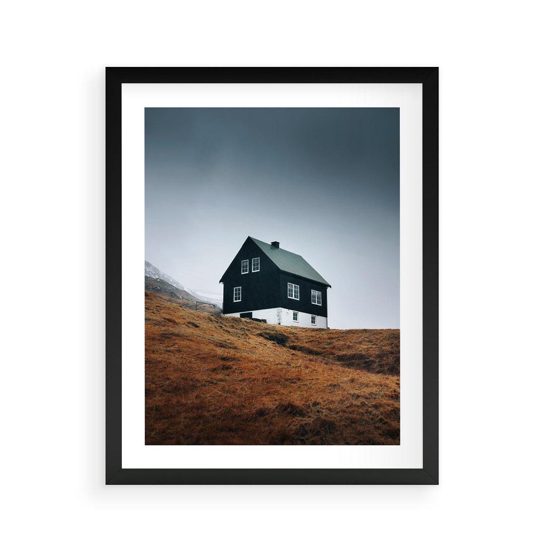 Plakat w ramie 40x50 - Ciepło i Przytulność - skandynawski, domek - rama czarna
