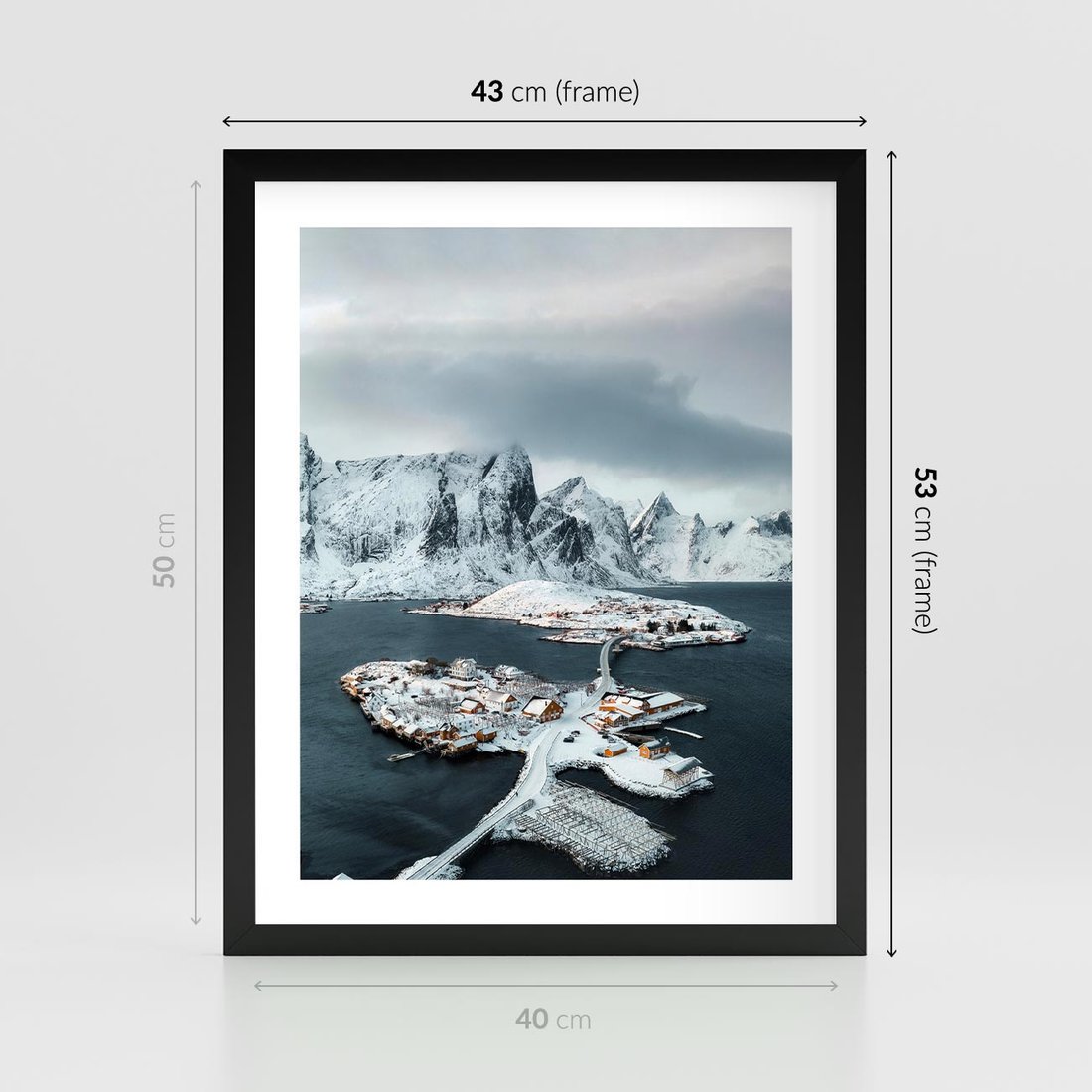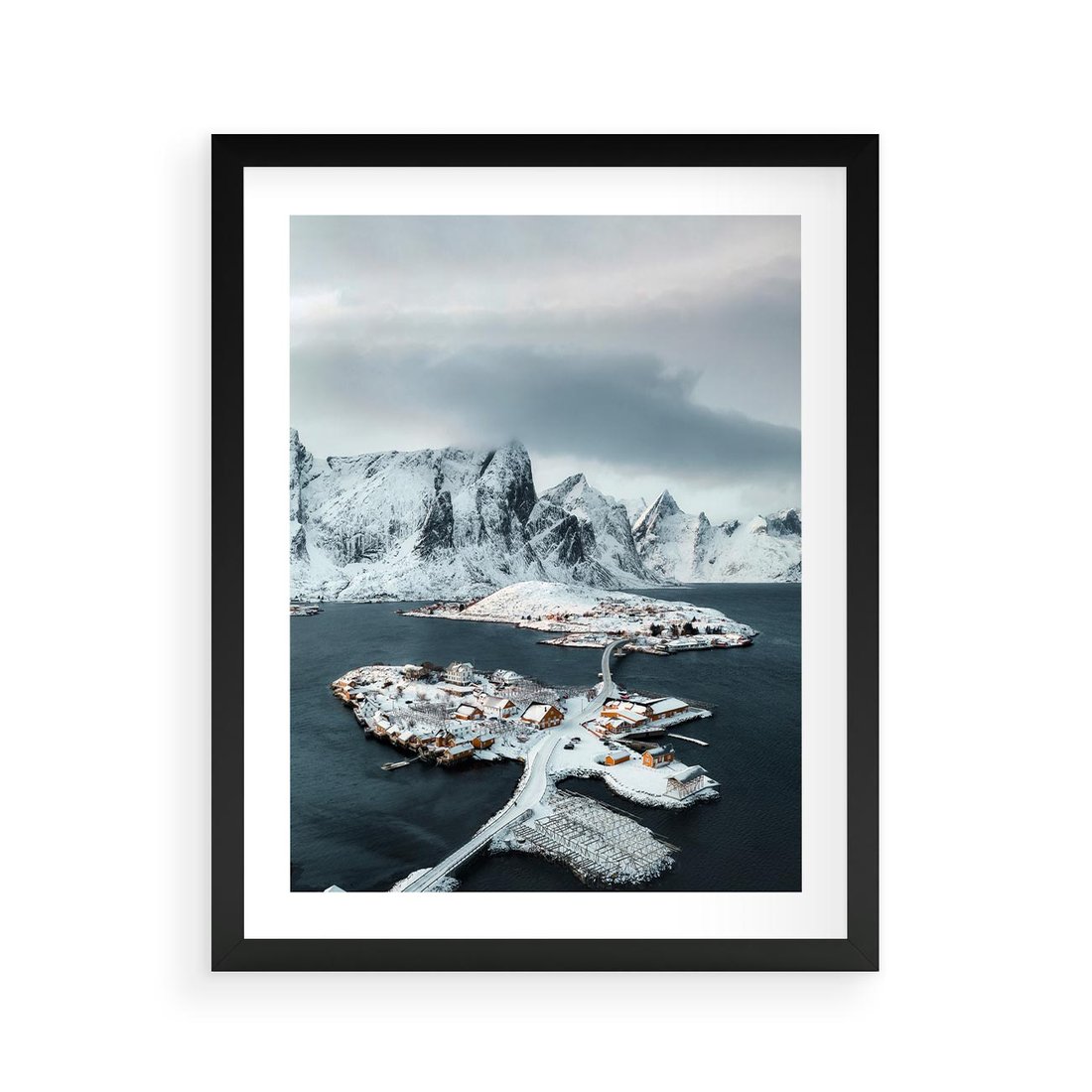 Plakat w ramie 40x50 - Ciepło i Urok Północy - skandynawskie, domki - rama czarna