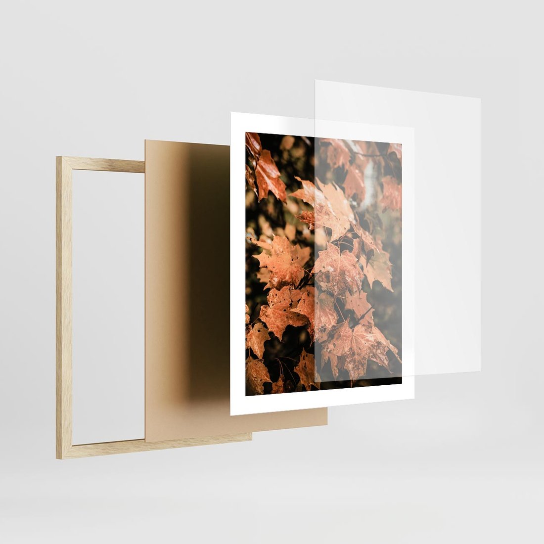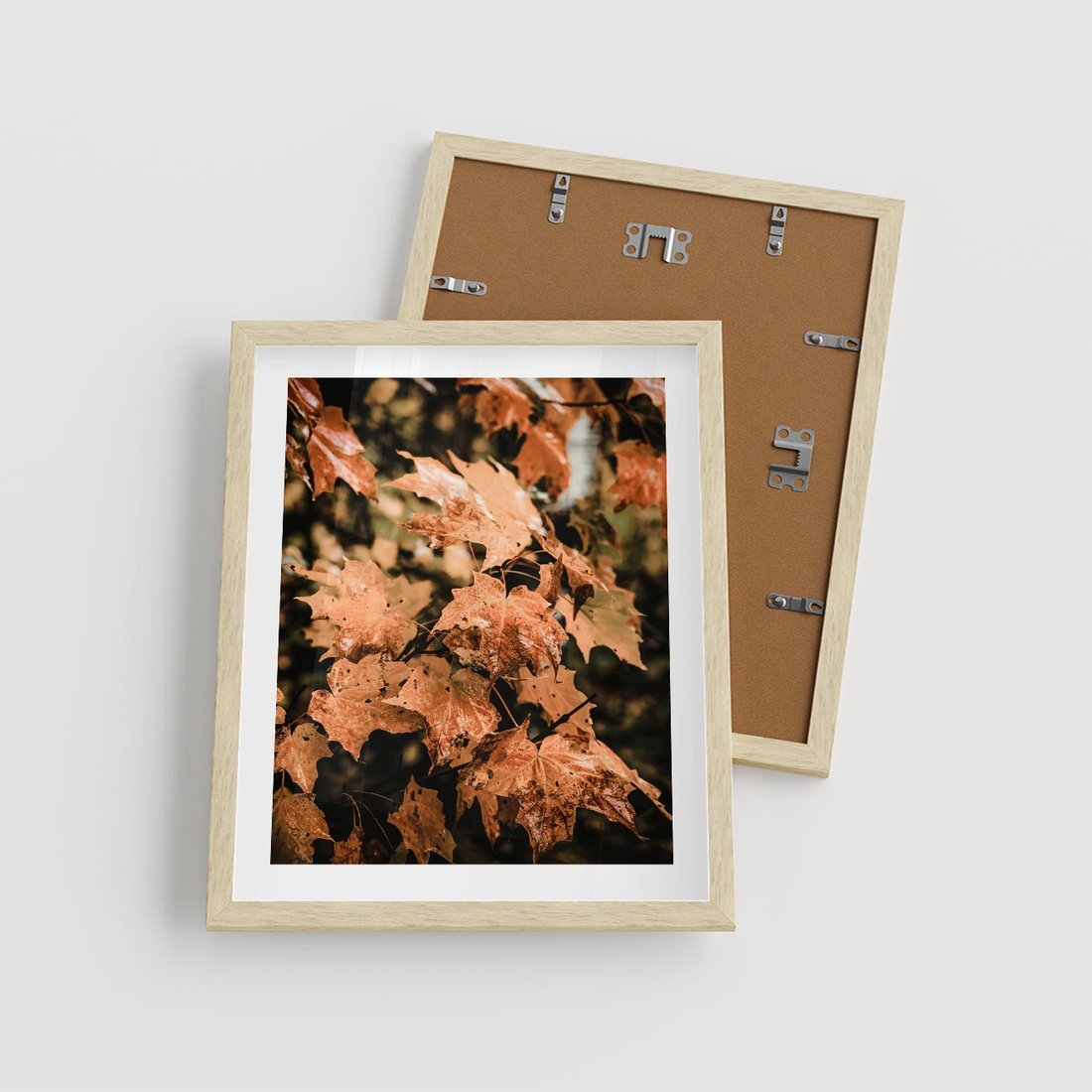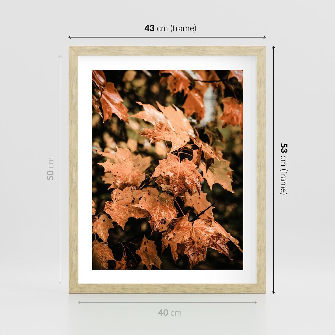 Plakat w ramie 40x50 - Ciepło Jesieni - jesienne pomarańczowe liśćie, jesień - rama drewno