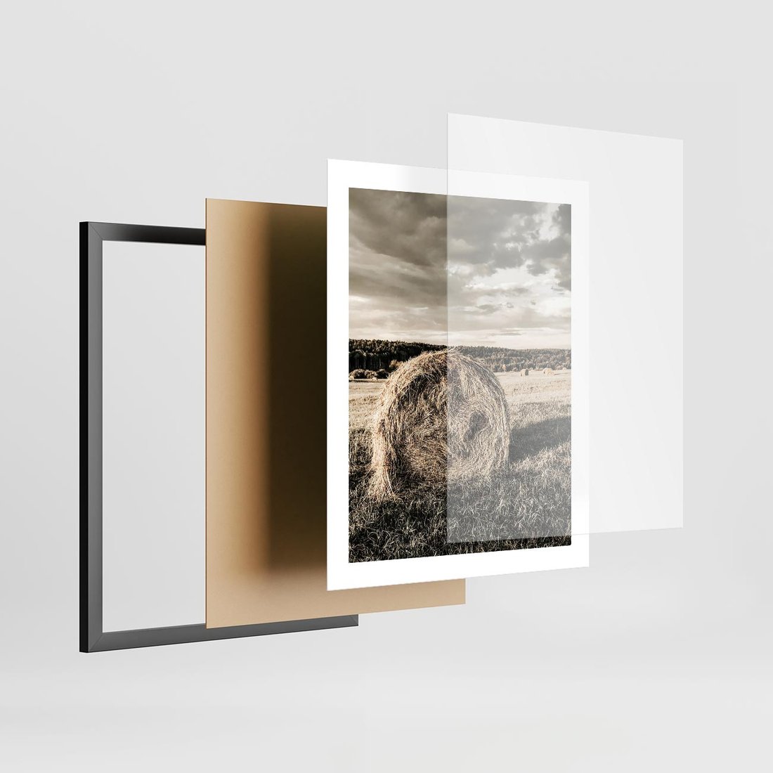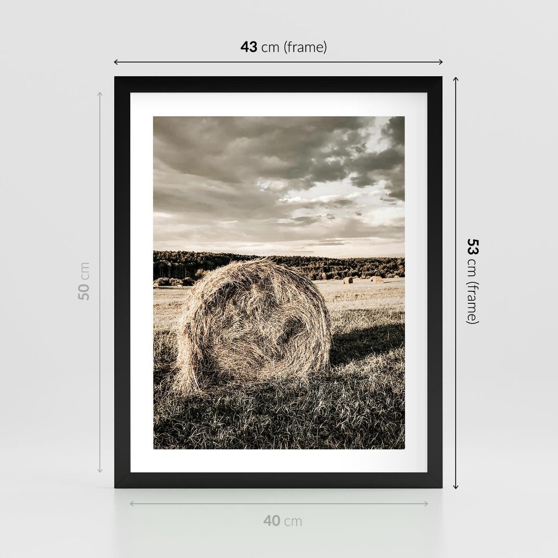 Plakat w ramie 40x50 - Ciepło Natury - snopki siana, pole - rama czarna