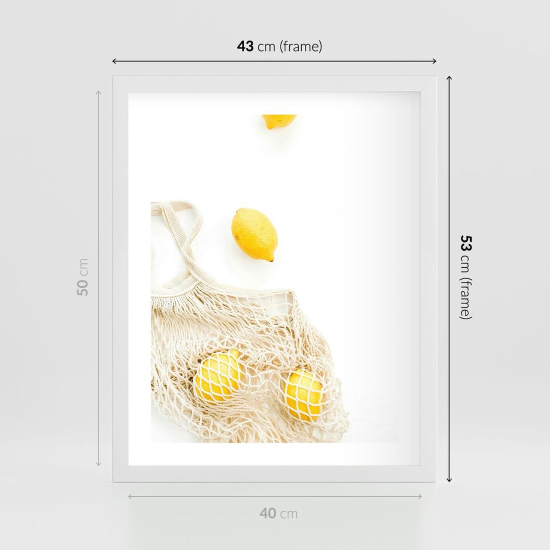 Plakat w ramie 40x50 - Cytrynowa Siatka - cytryny, materiałowa siatka - rama biała