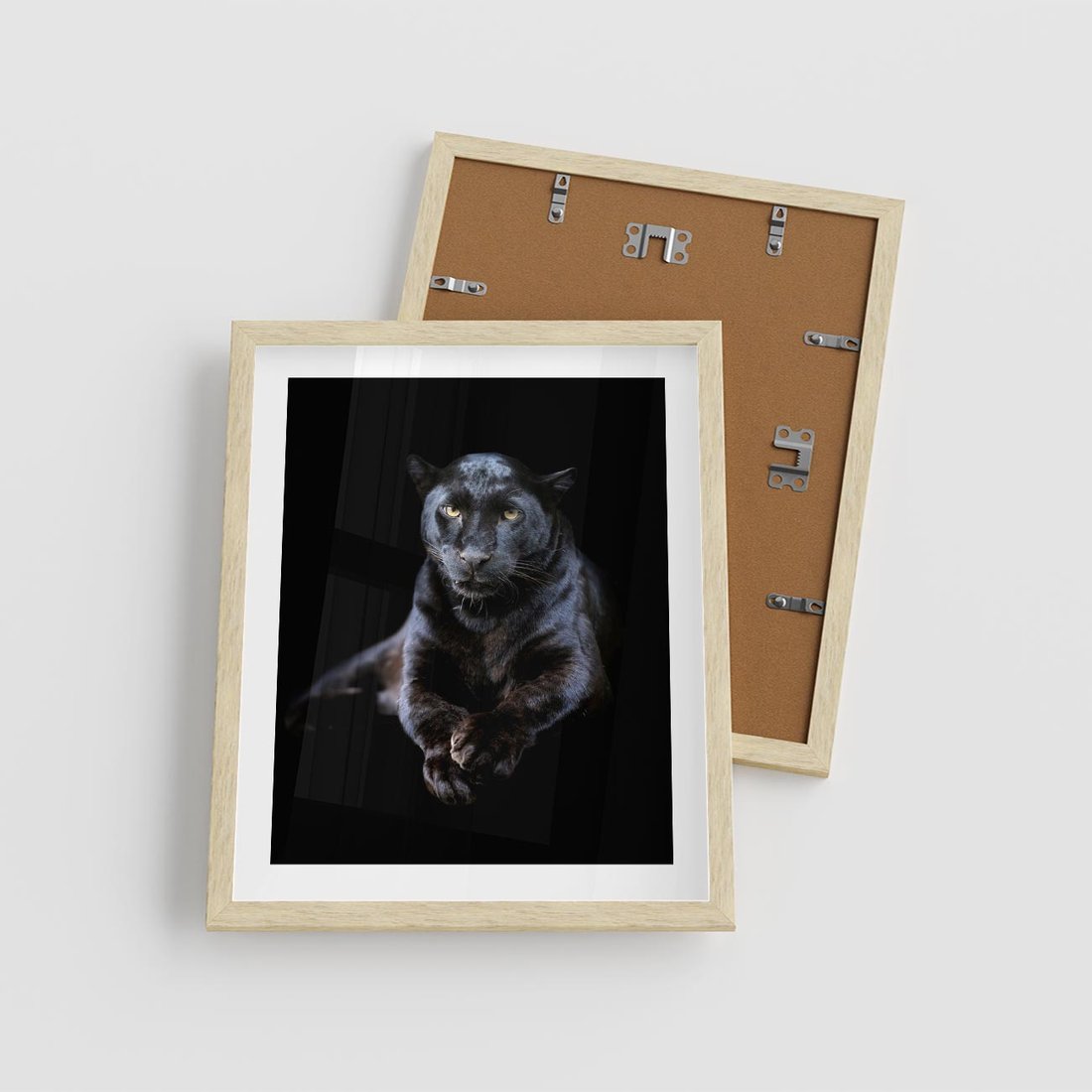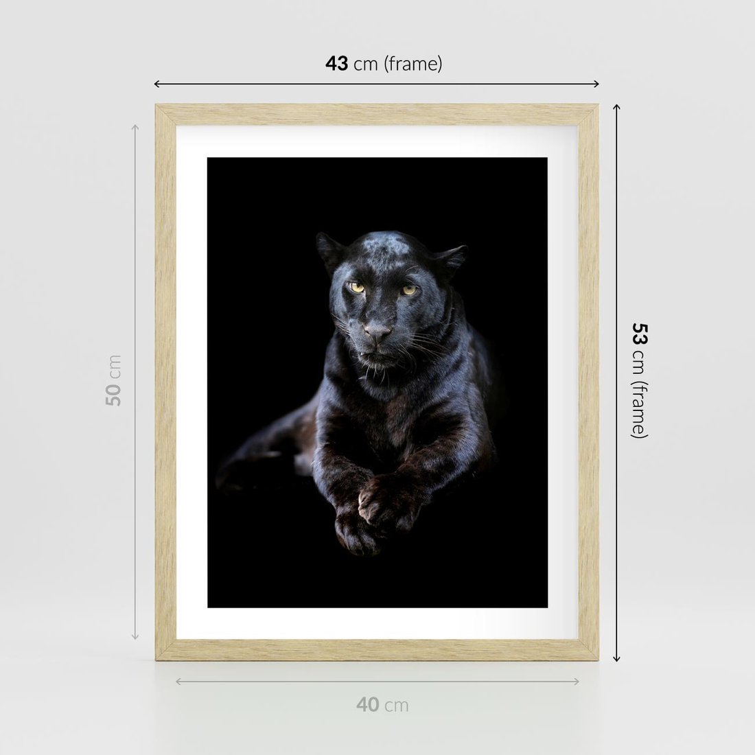Plakat w ramie 40x50 - Czarna pantera: majestat i siła - czarna, pantera - rama drewno