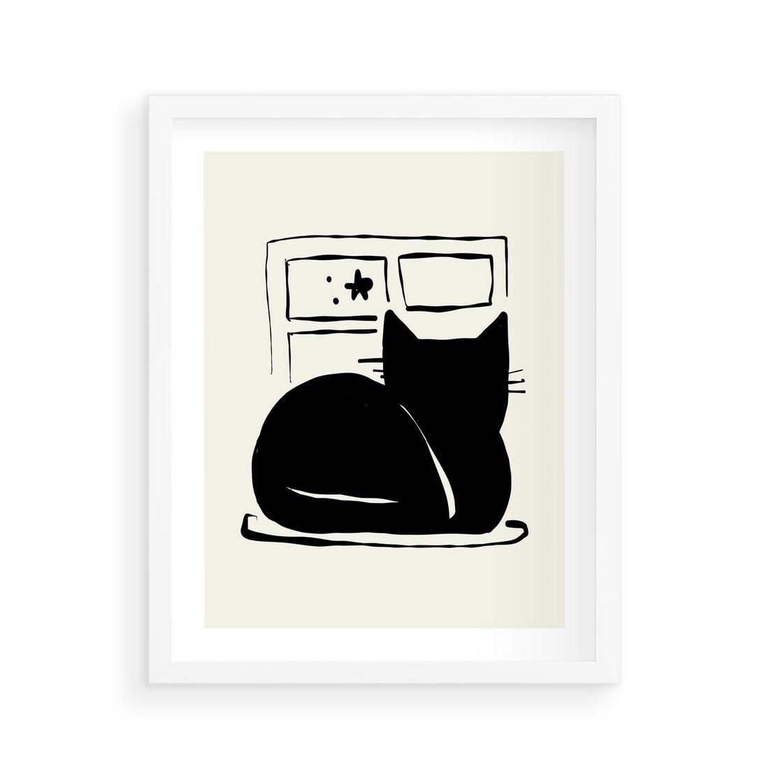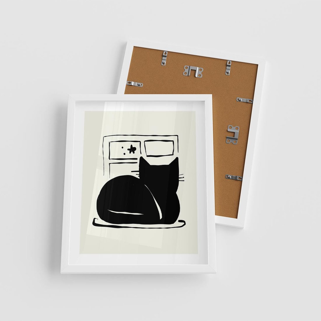 Plakat w ramie 40x50 - Czarny Kot: Prosta Elegancja - grafika, minimalizm - rama biała