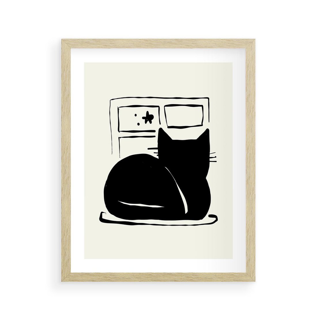 Plakat w ramie 40x50 - Czarny Kot: Prosta Elegancja - grafika, minimalizm - rama drewno
