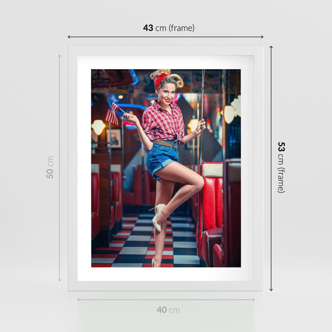 Plakat w ramie 40x50 - Czas Wstecz - retro, restauracja - rama biała
