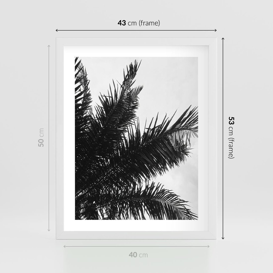 Plakat w ramie 40x50 - Czas Zapomnienia - palmy, czarno biała fotografia - rama biała