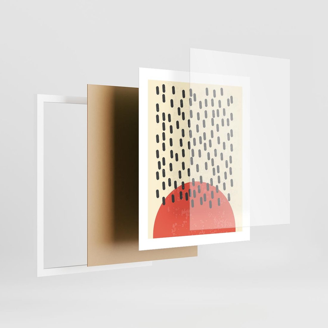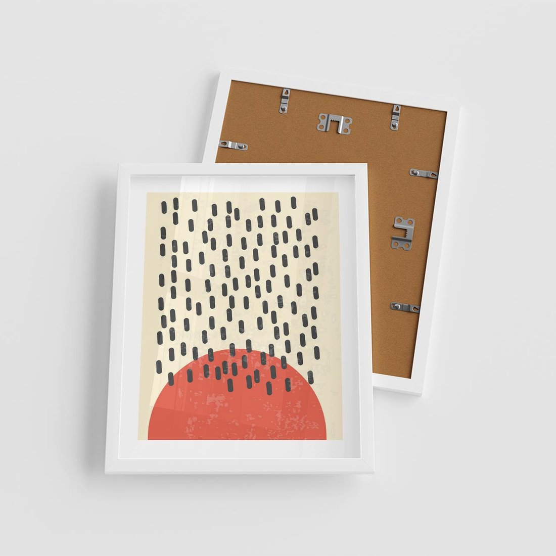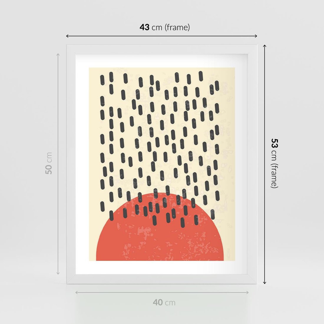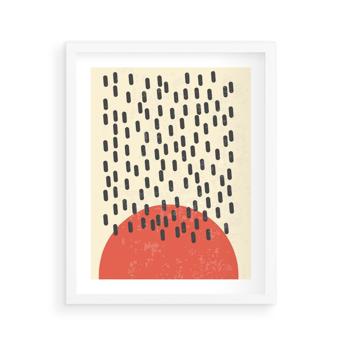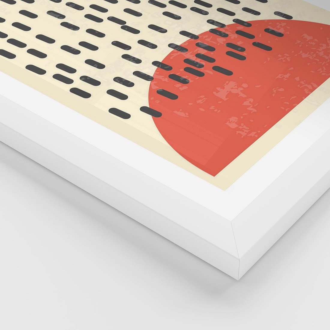 Plakat w ramie 40x50 - Czerwona Abstrakcja: Grafika z Wyrazistym Kołem - abstrakcja grafika, czerwone koło - rama biała