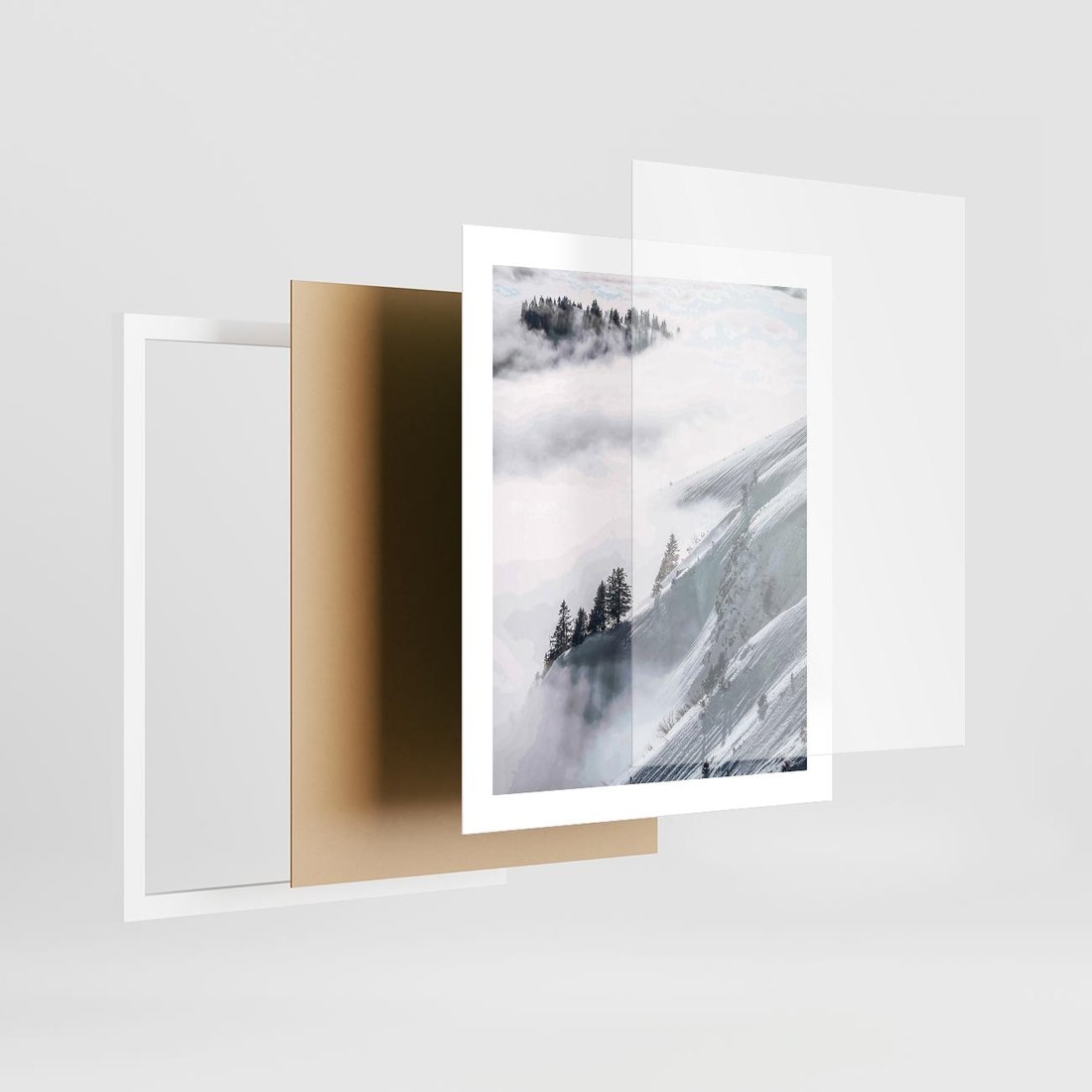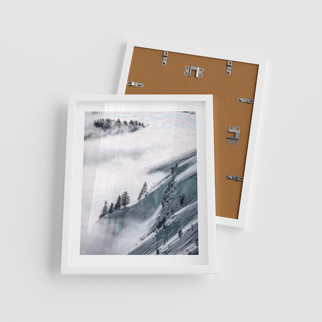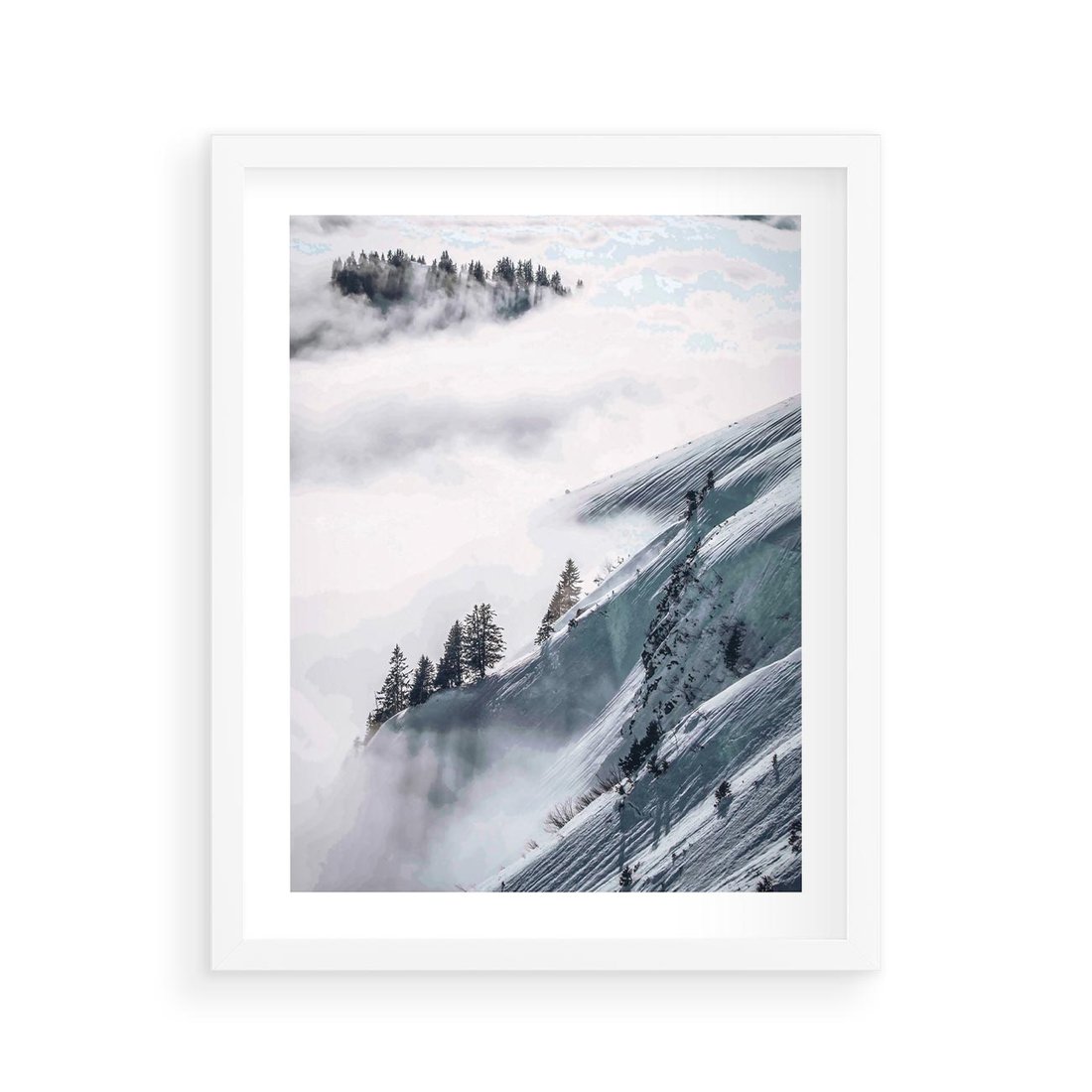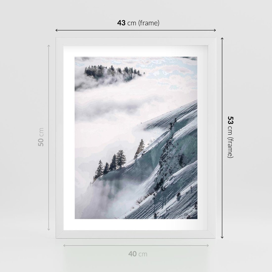 Plakat w ramie 40x50 - Czystość Natury - ośnieżone szczyty górskie, pejzaż - rama biała