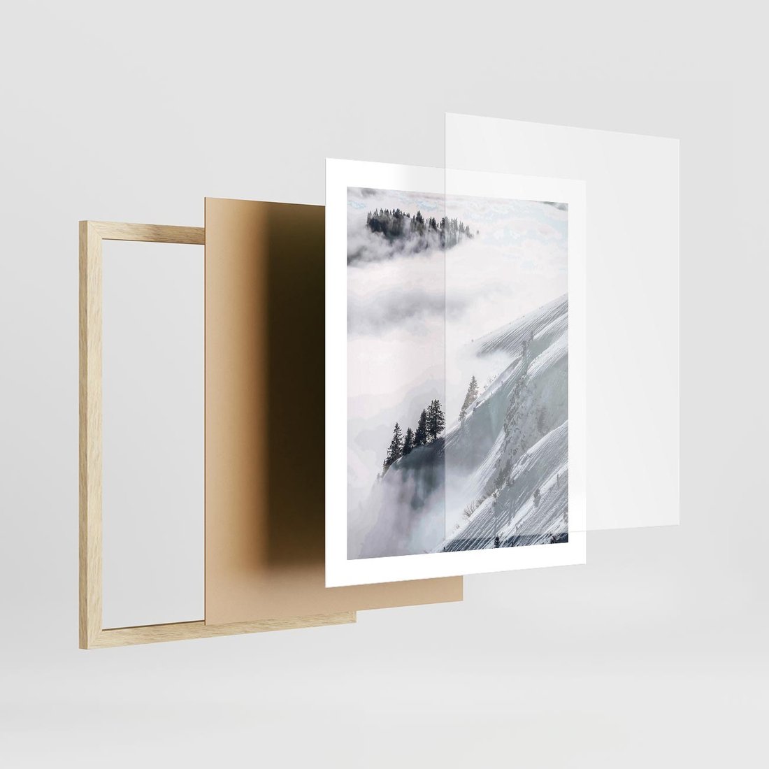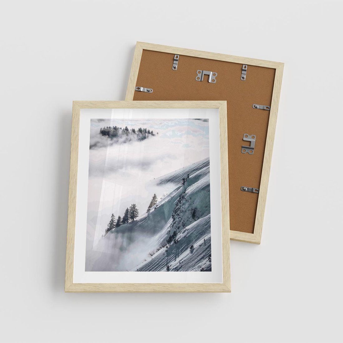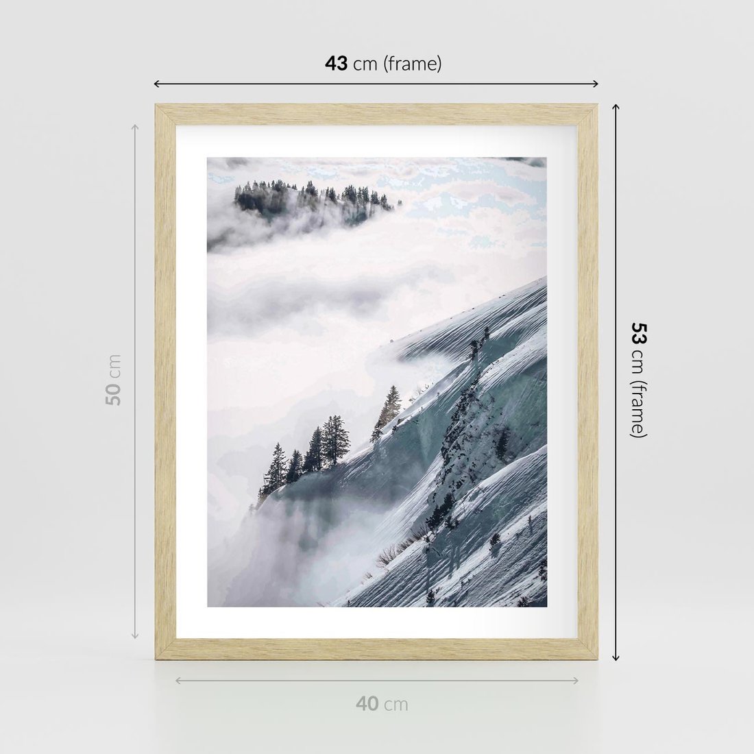 Plakat w ramie 40x50 - Czystość Natury - ośnieżone szczyty górskie, pejzaż - rama drewno