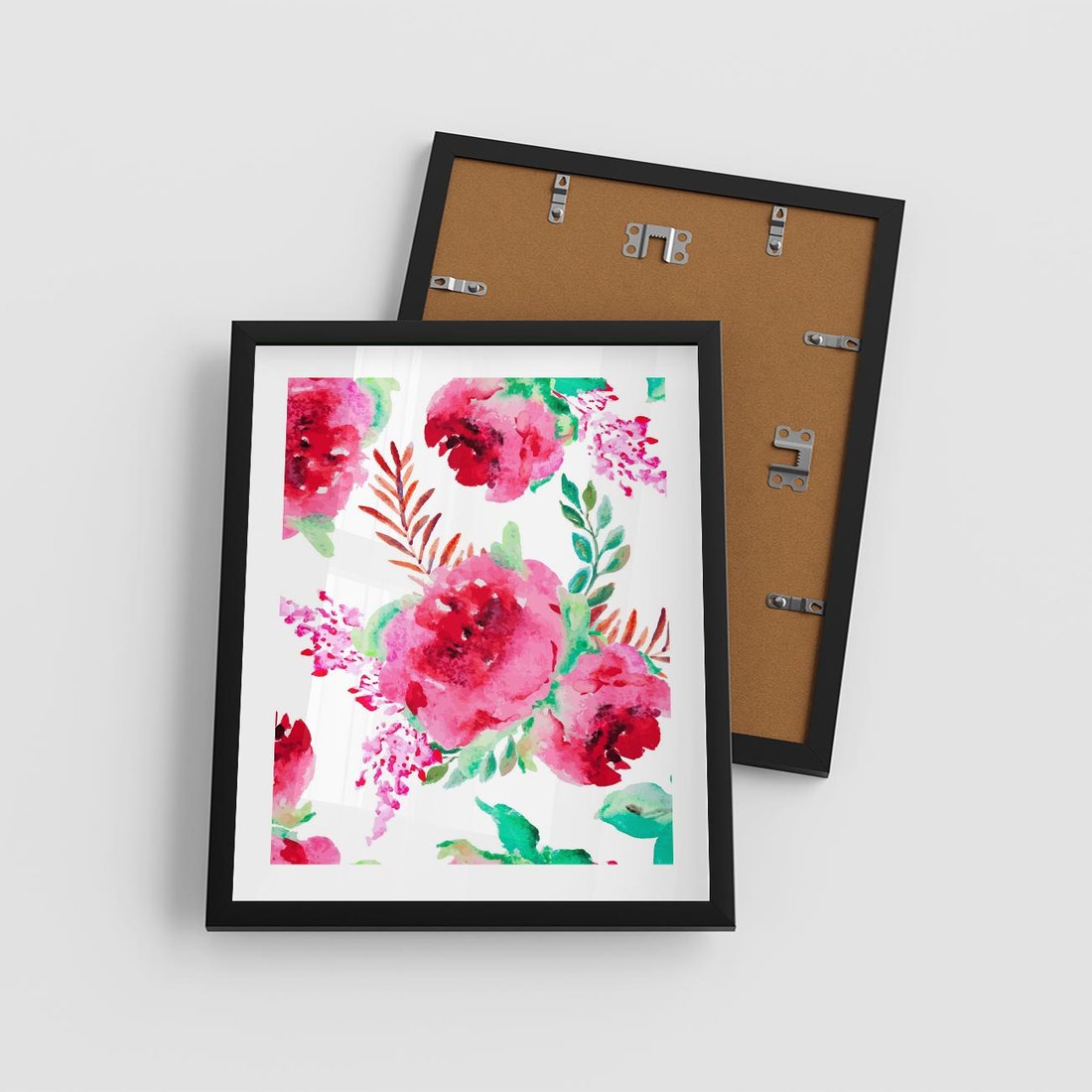 Plakat w ramie 40x50 - Delikatna Akwarela - kwiaty, akwarela - rama czarna