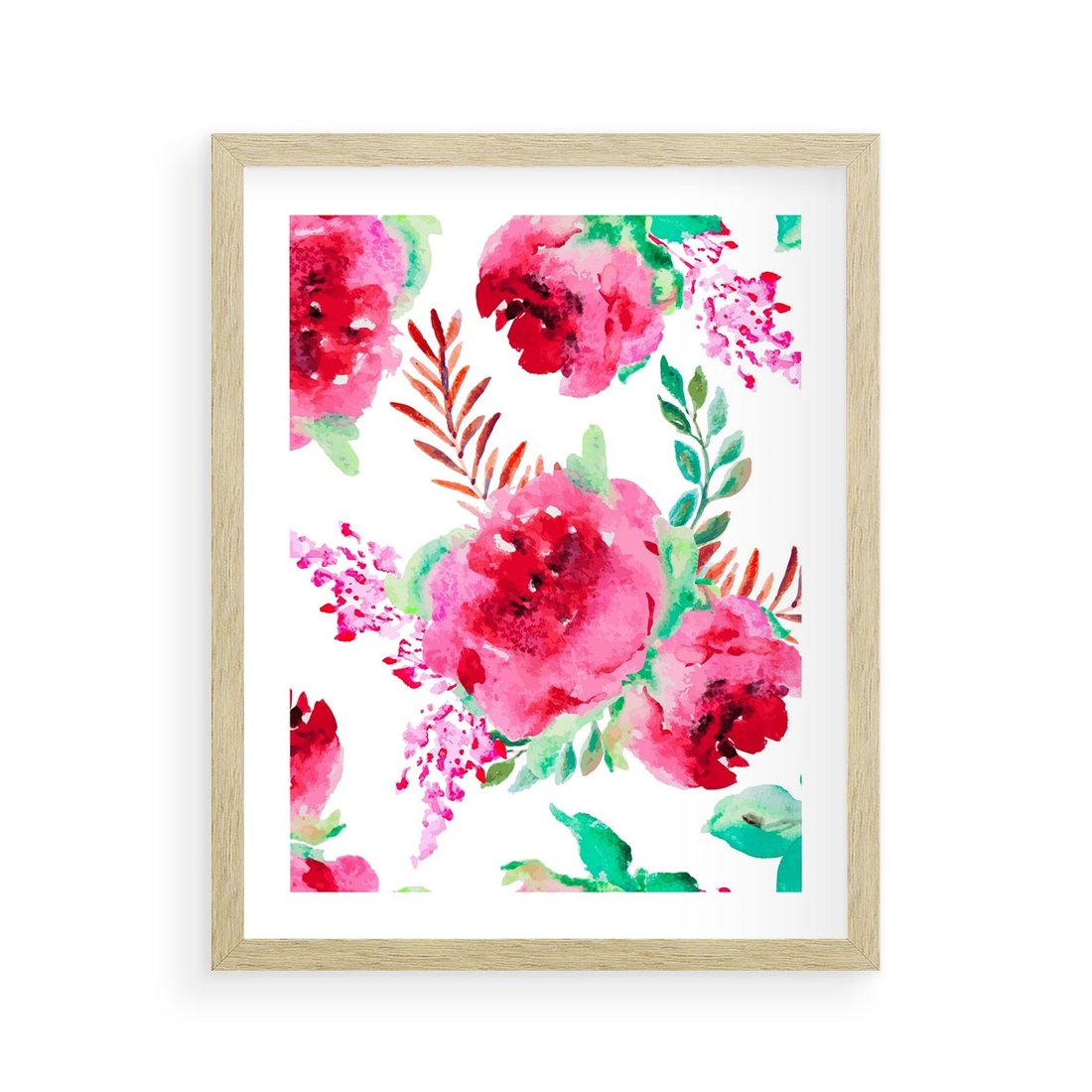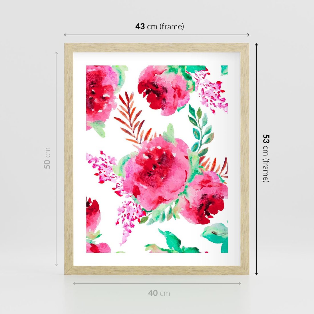 Plakat w ramie 40x50 - Delikatna Akwarela - kwiaty, akwarela - rama drewno