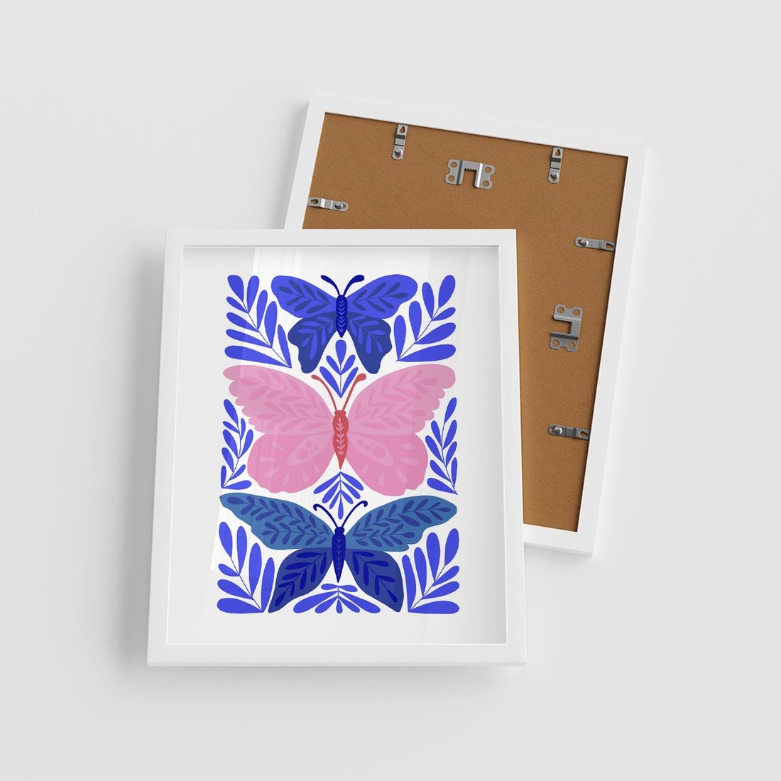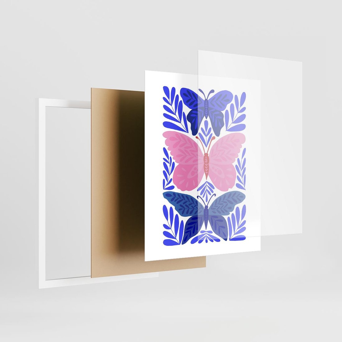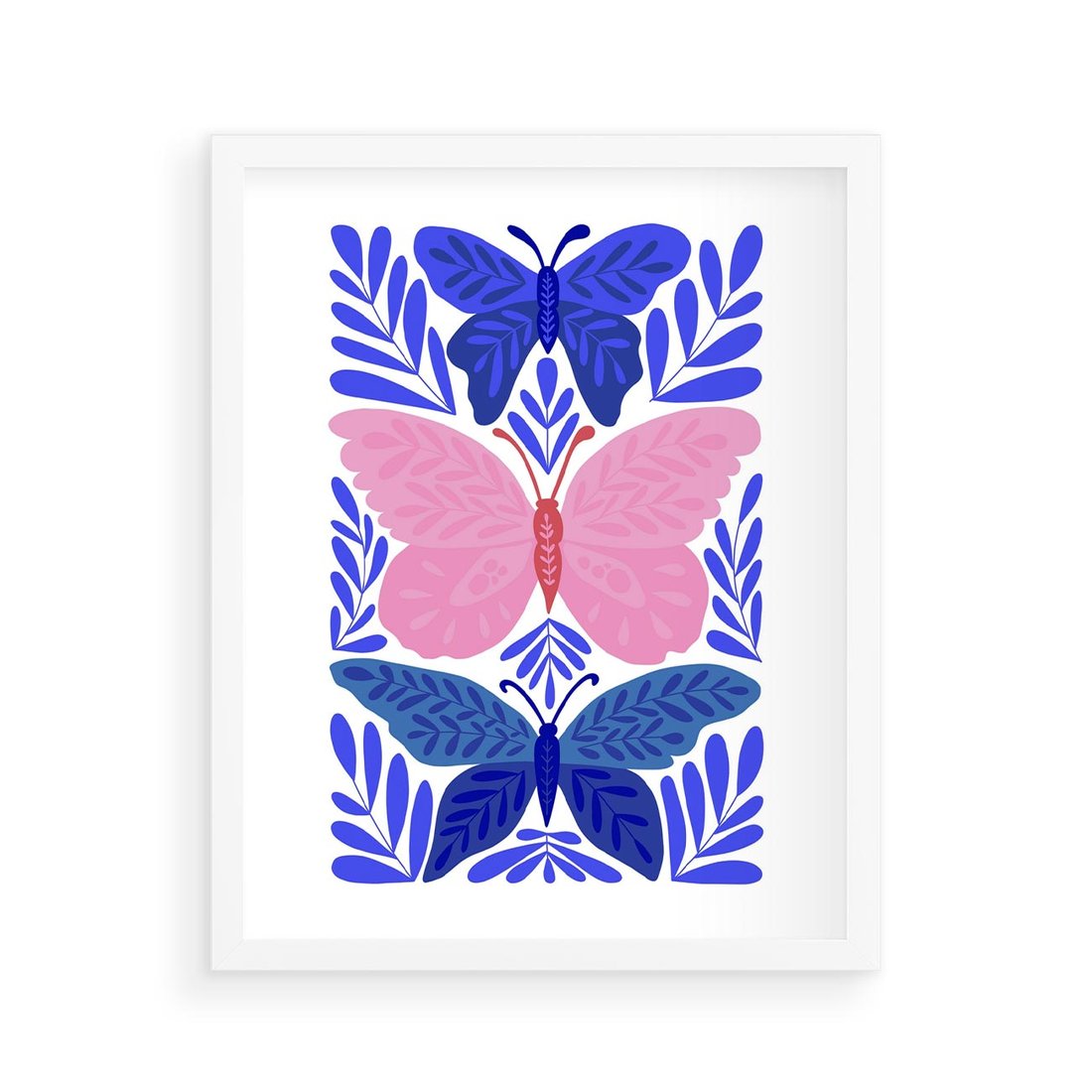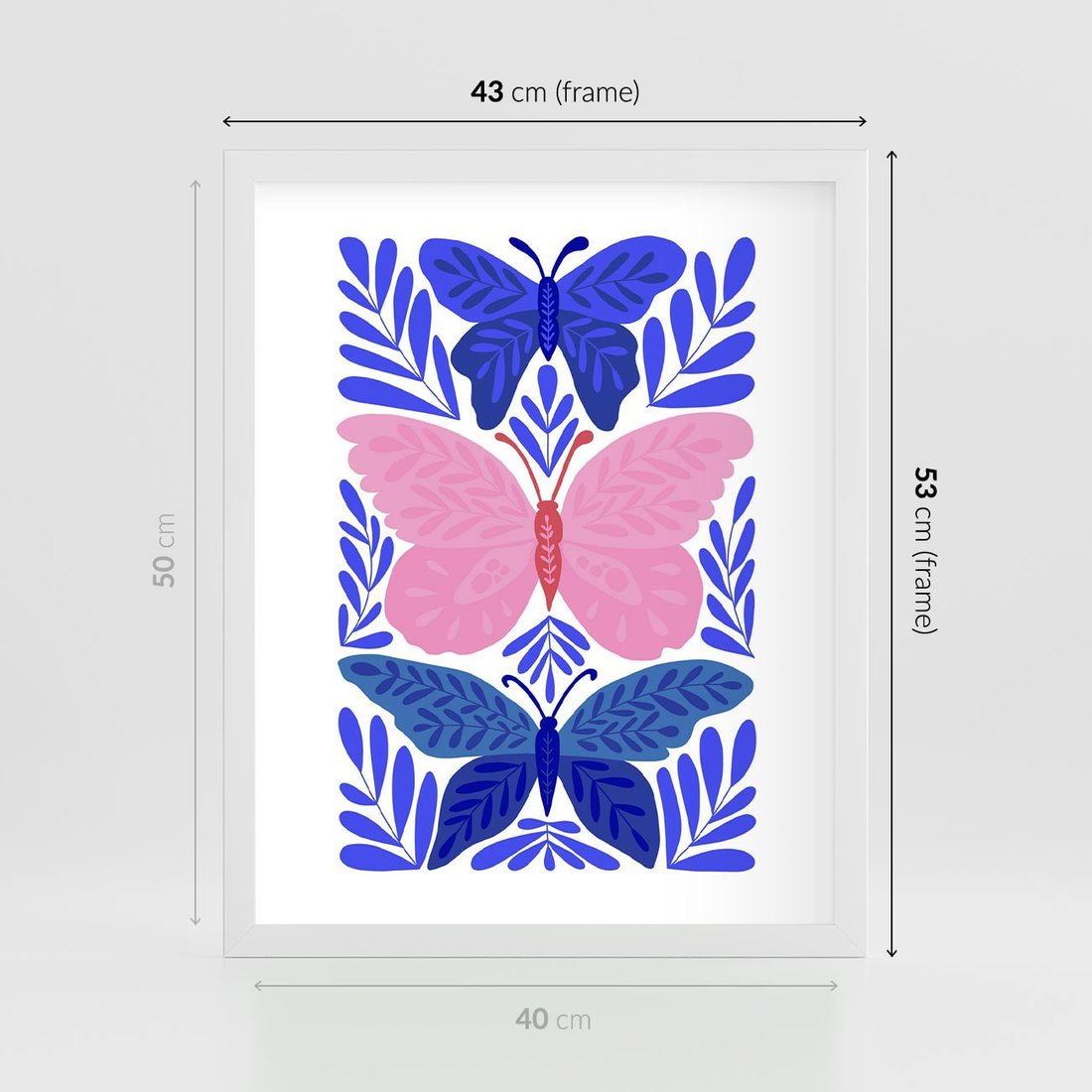 Plakat w ramie 40x50 - Delikatna Symfonia Natury - motyle, rośliny - rama biała