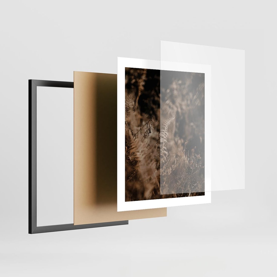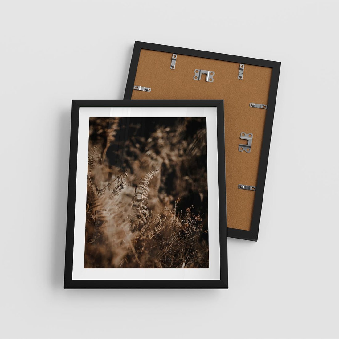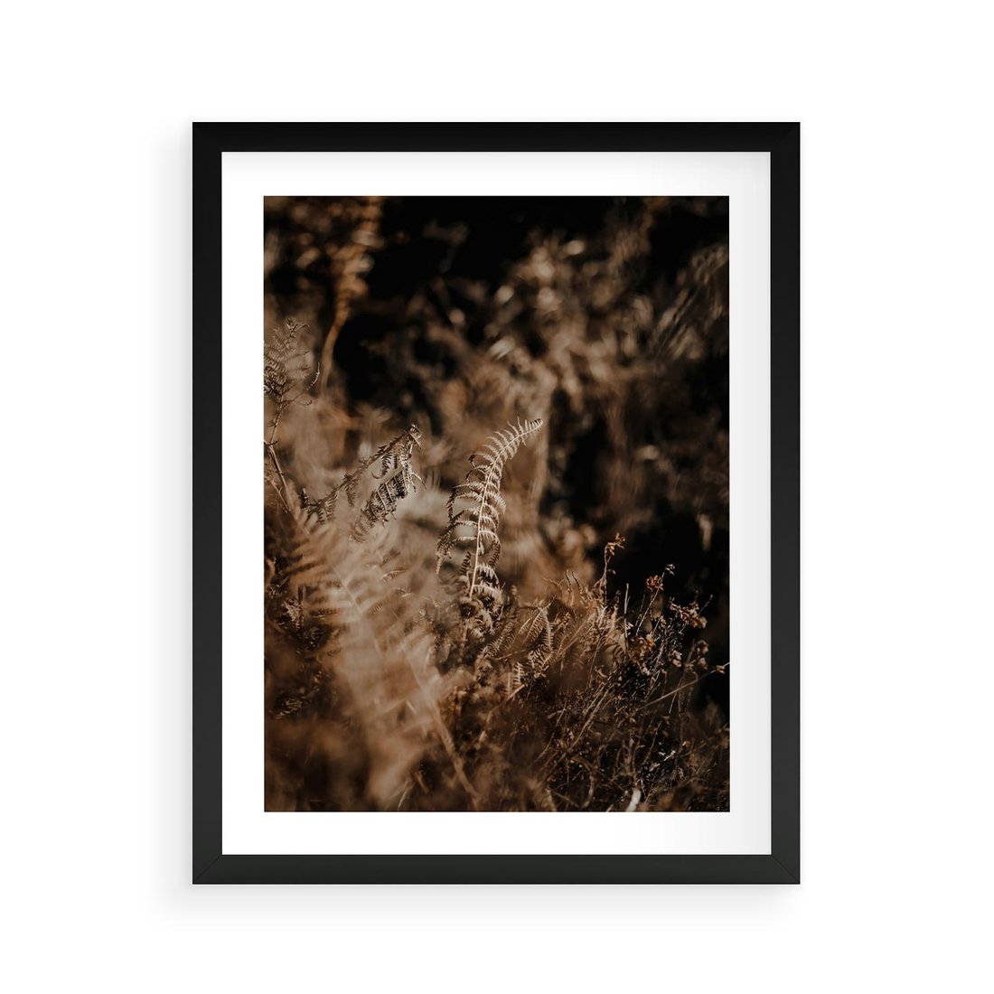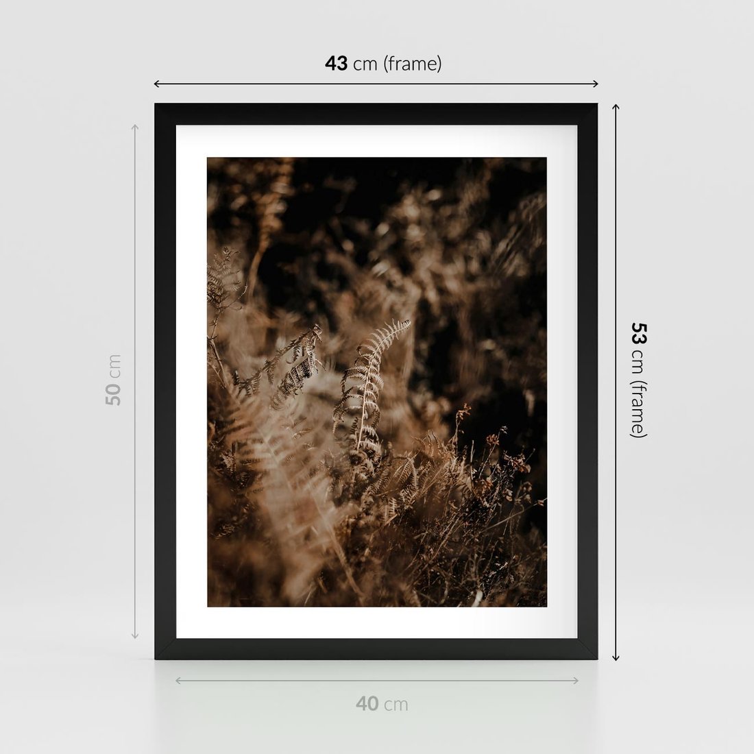 Plakat w ramie 40x50 - Delikatne Detale - paprocie, brąz - rama czarna