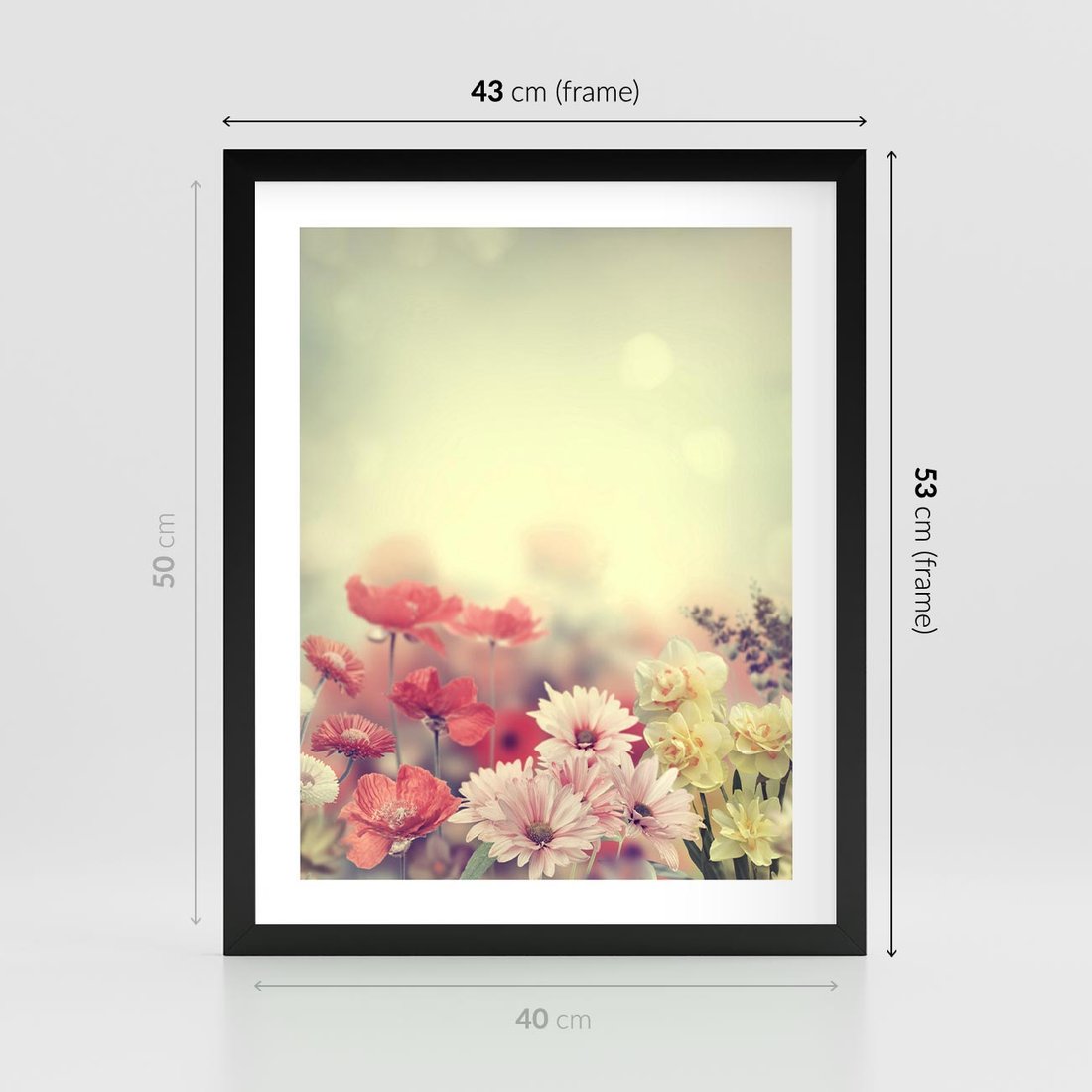 - Plakat w ramie 40x50 - Delikatne kwiaty pastelowe