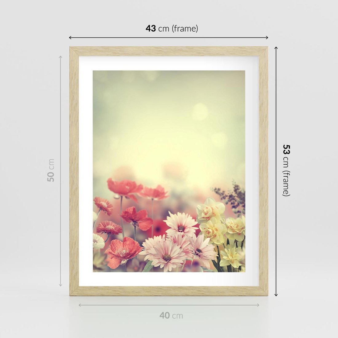 Plakat w ramie 40x50 - Delikatne kwiaty pastelowe - kwiaty, pastelowe - rama drewno