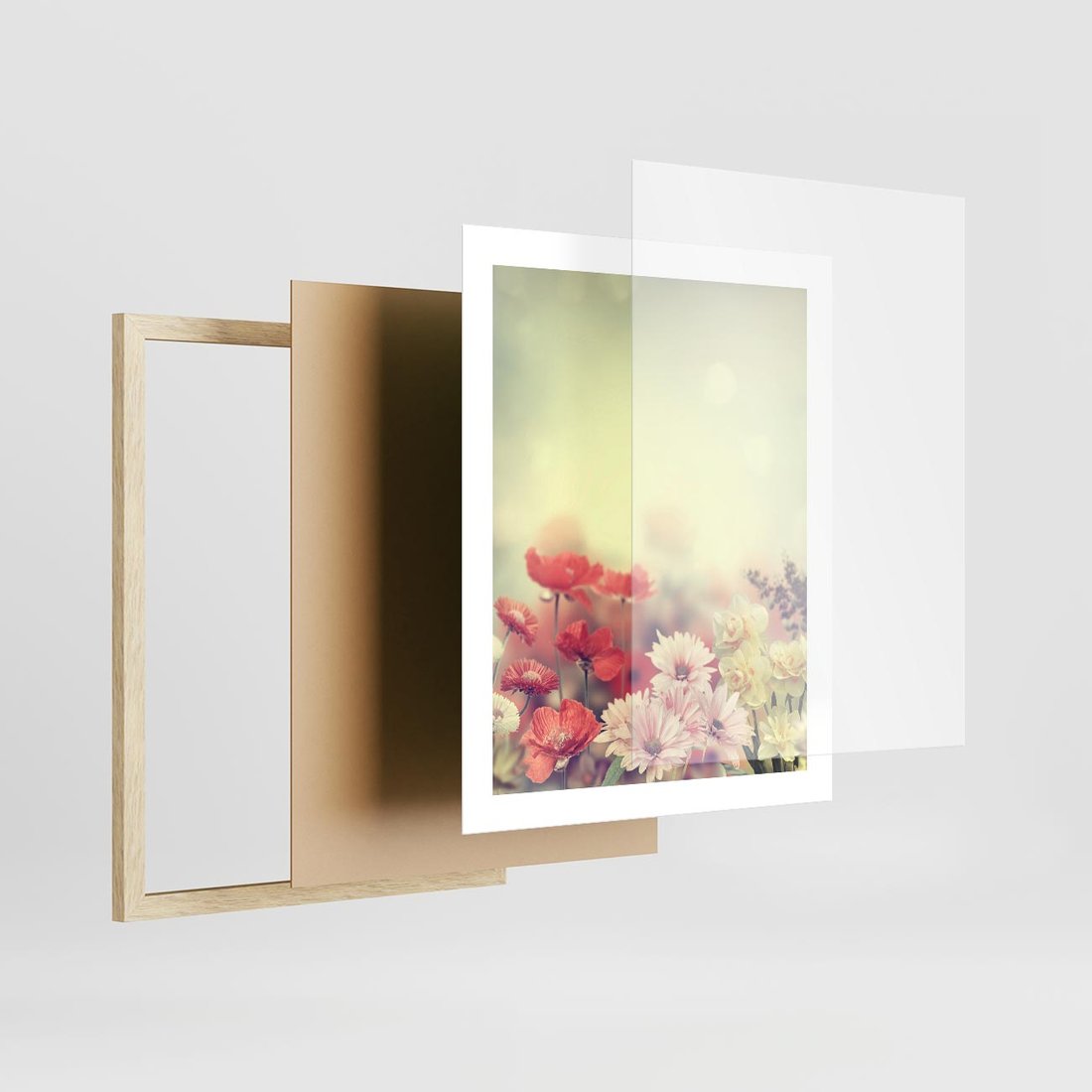 - Plakat w ramie 40x50 - Delikatne kwiaty pastelowe
