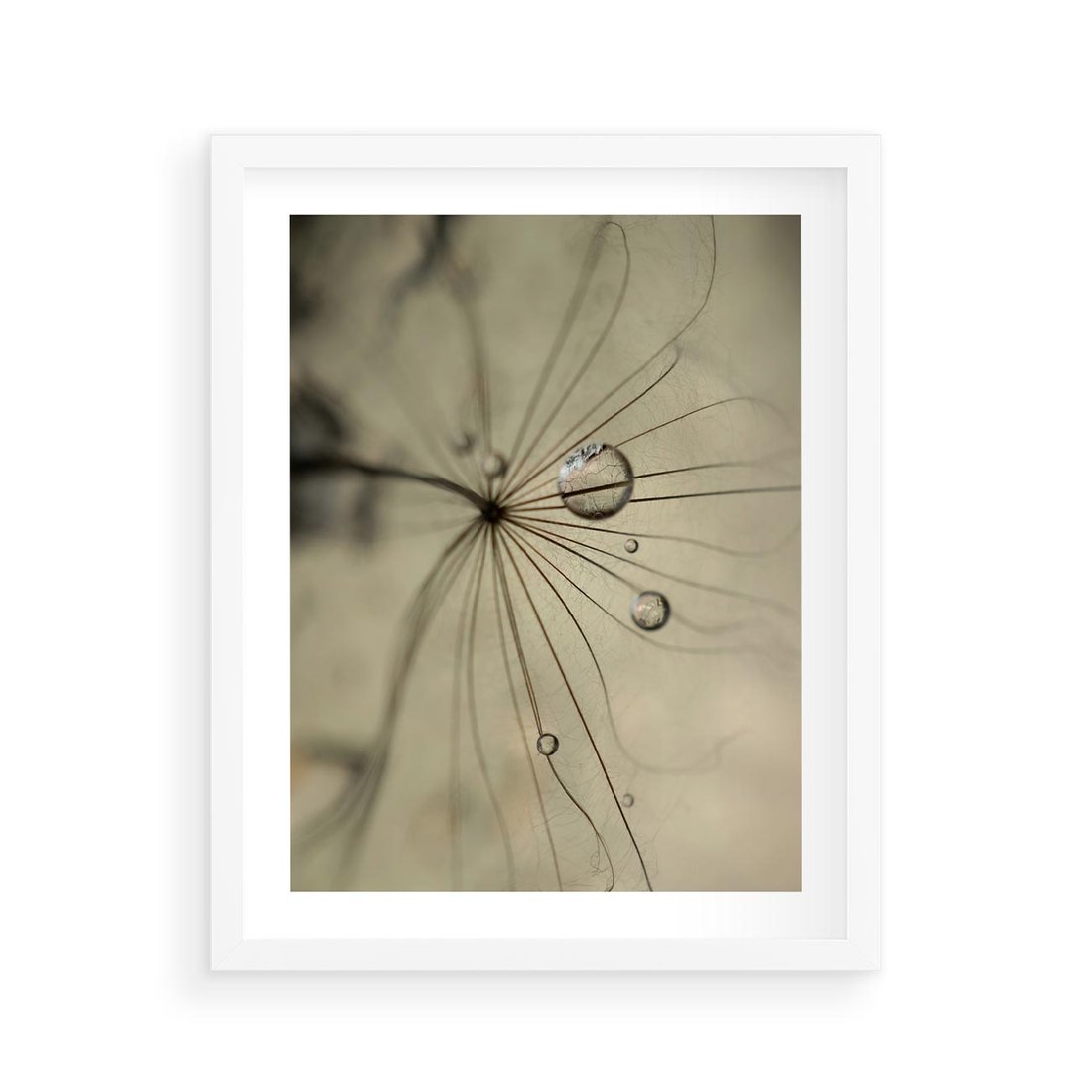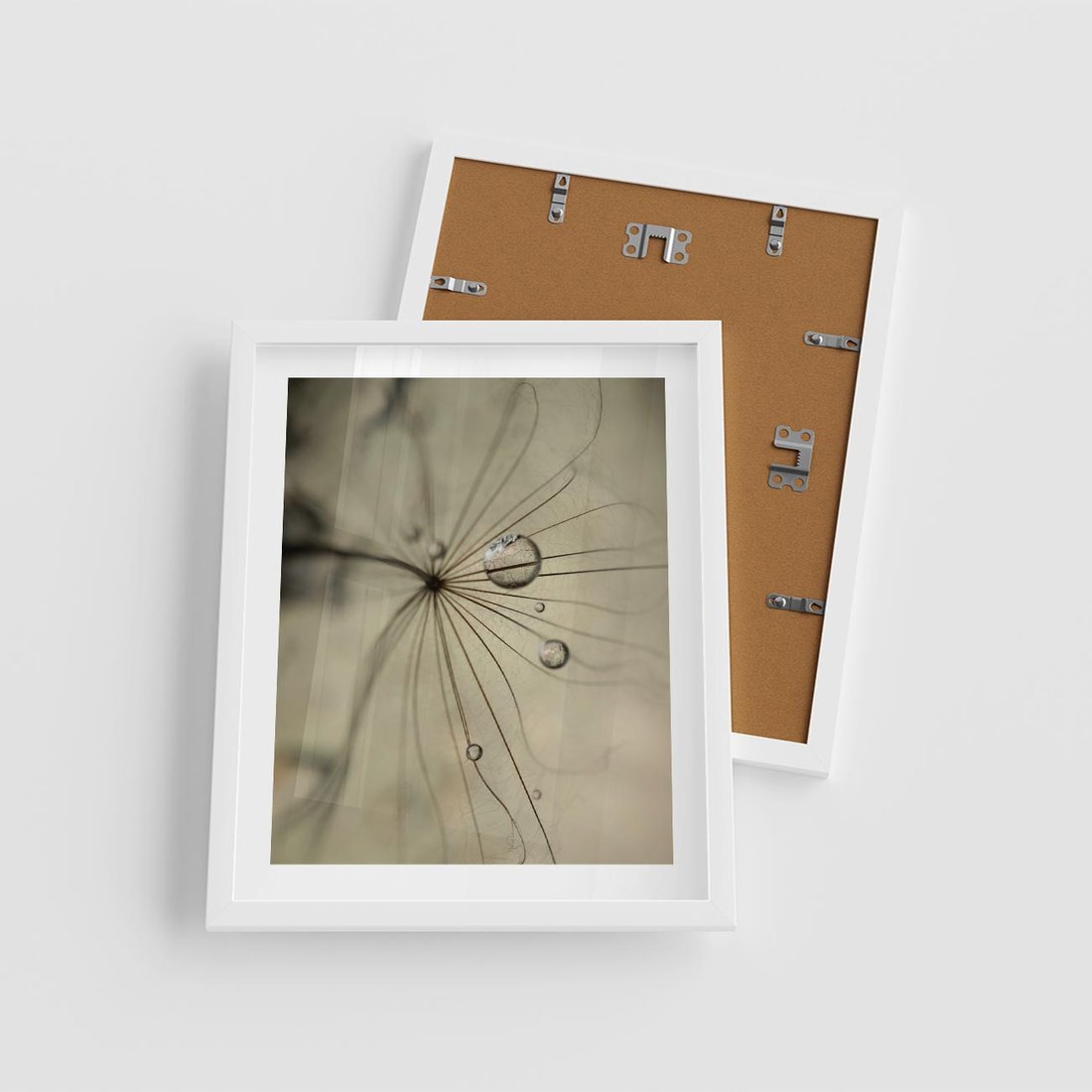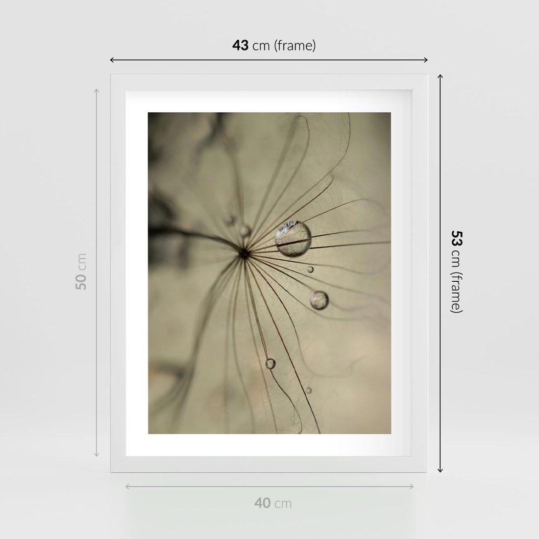 Plakat w ramie 40x50 - Delikatność dmuchawców - dmuchawce, krople - rama biała