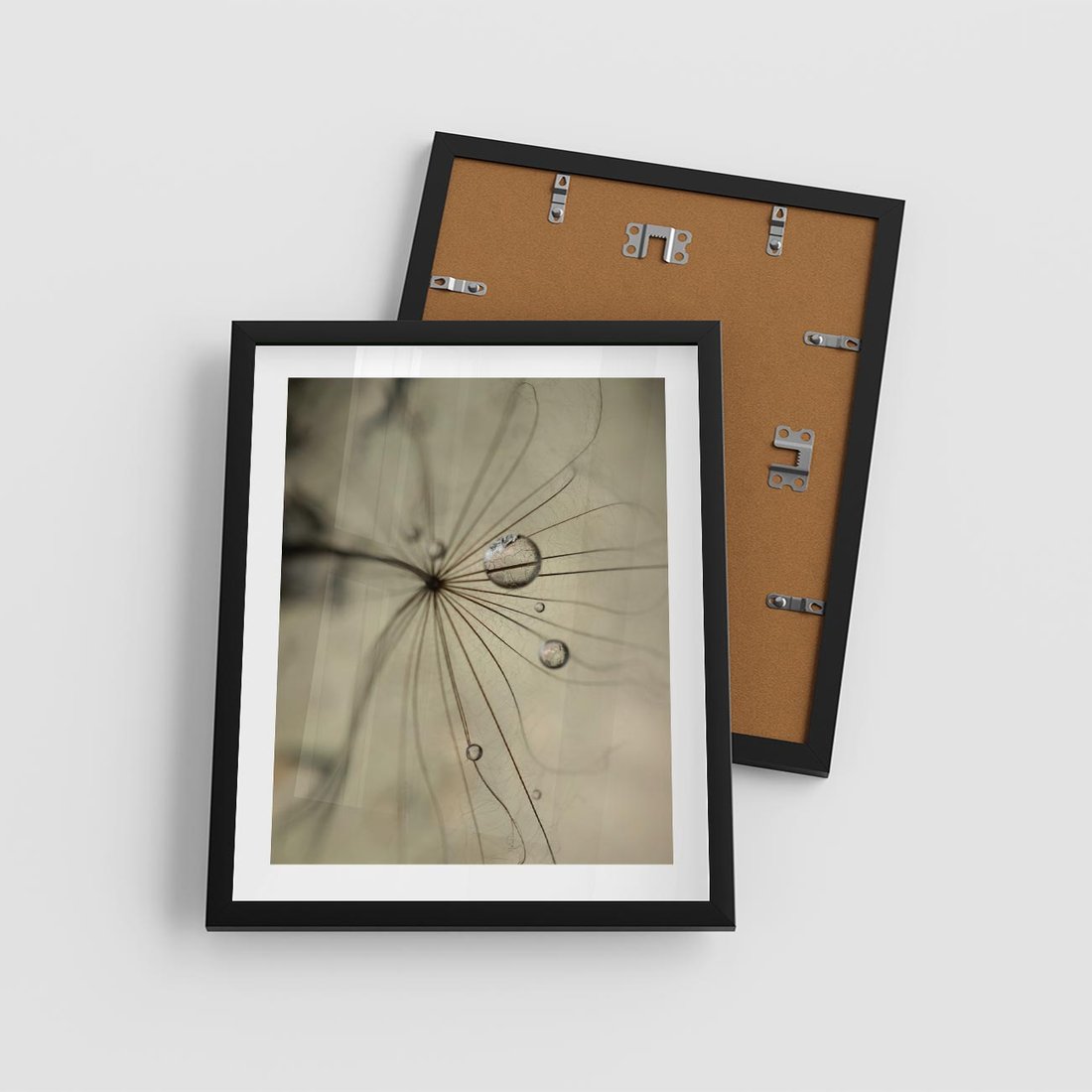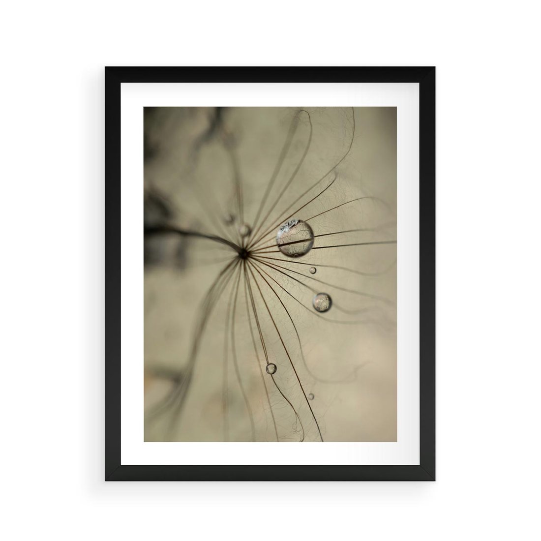 Plakat w ramie 40x50 - Delikatność dmuchawców - dmuchawce, krople - rama czarna