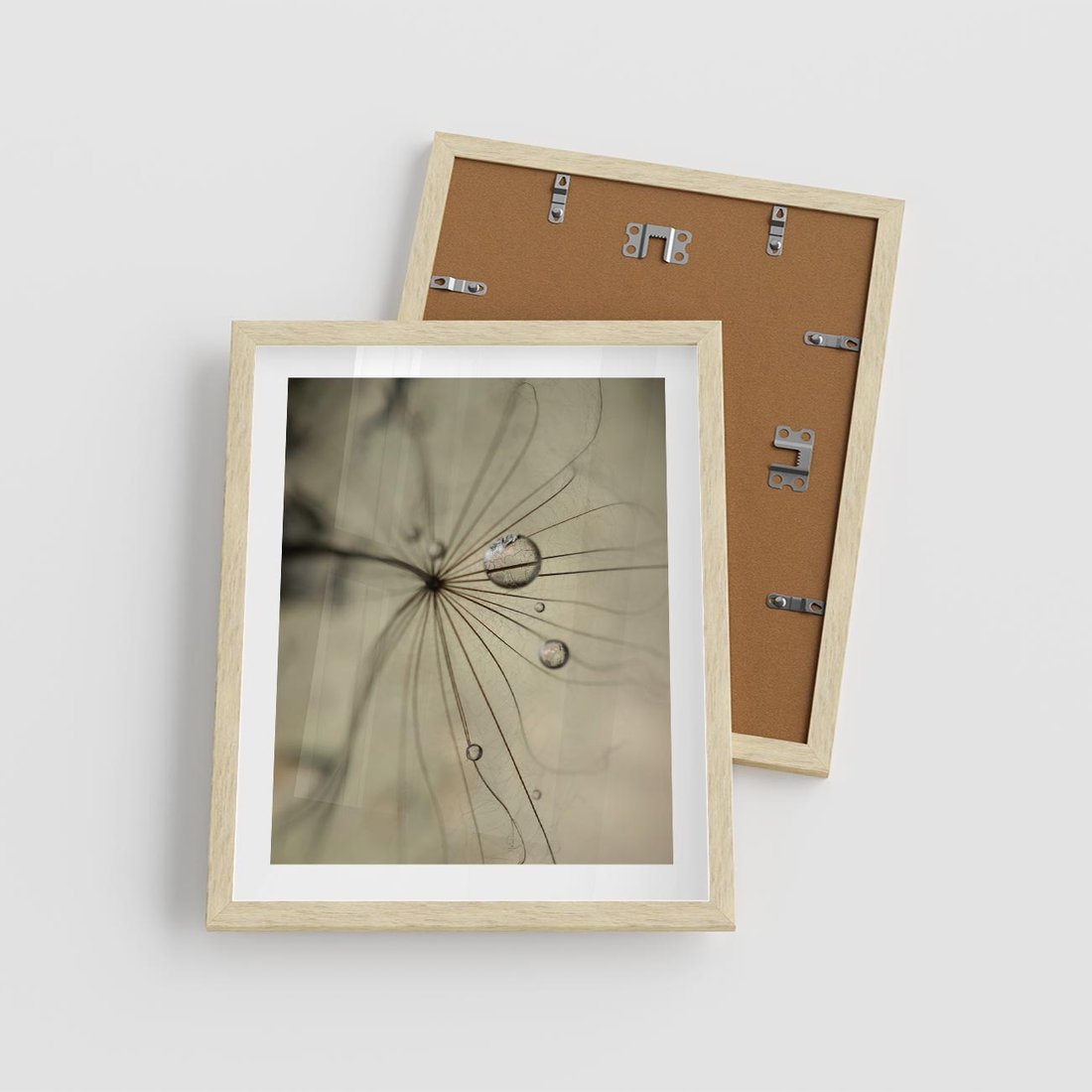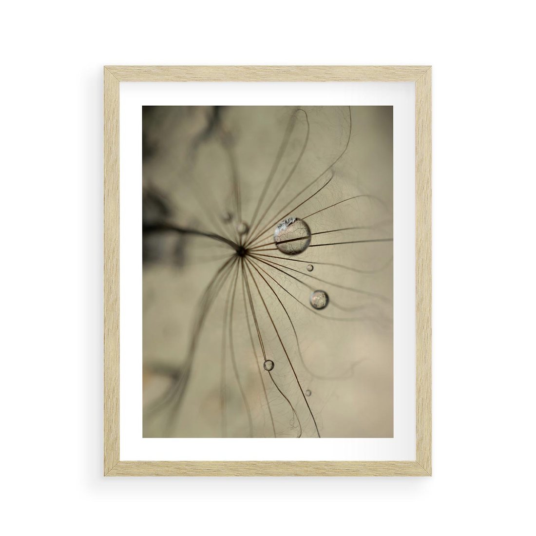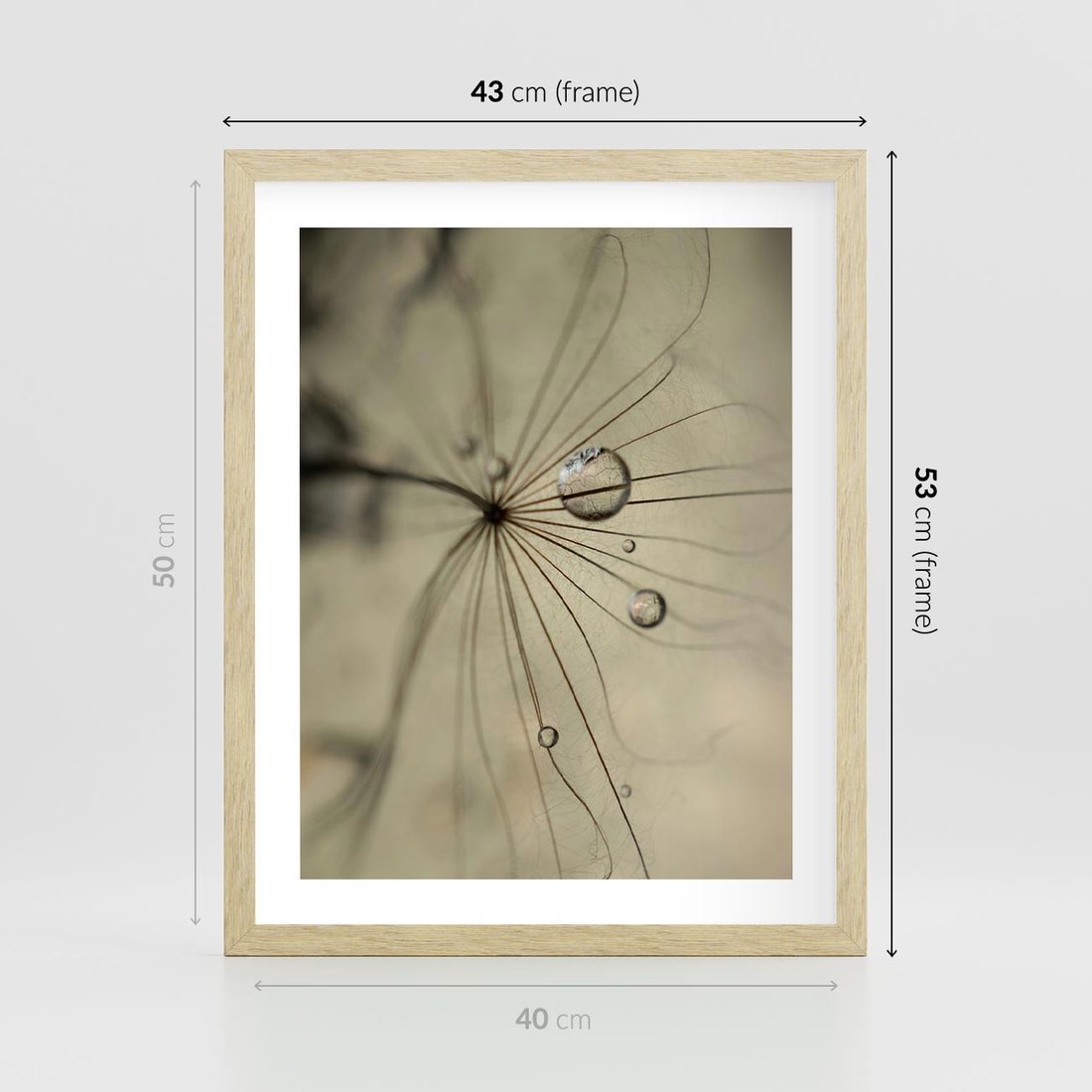 Plakat w ramie 40x50 - Delikatność dmuchawców - dmuchawce, krople - rama drewno