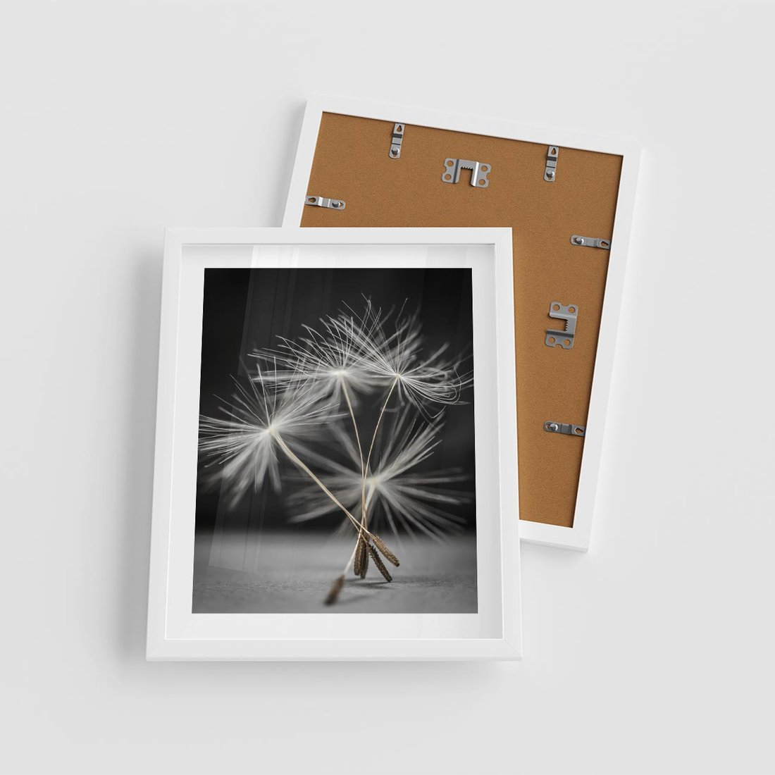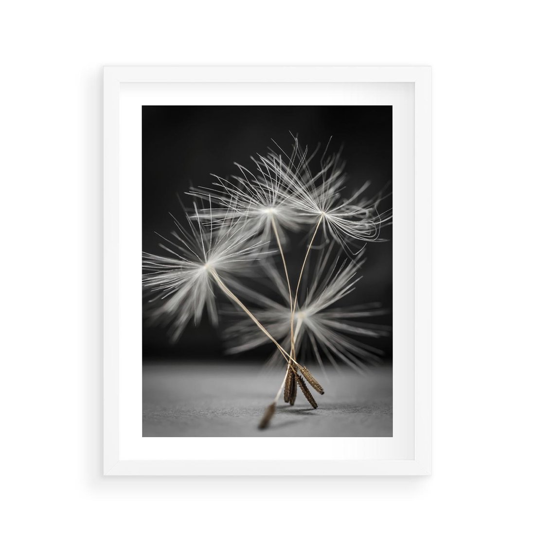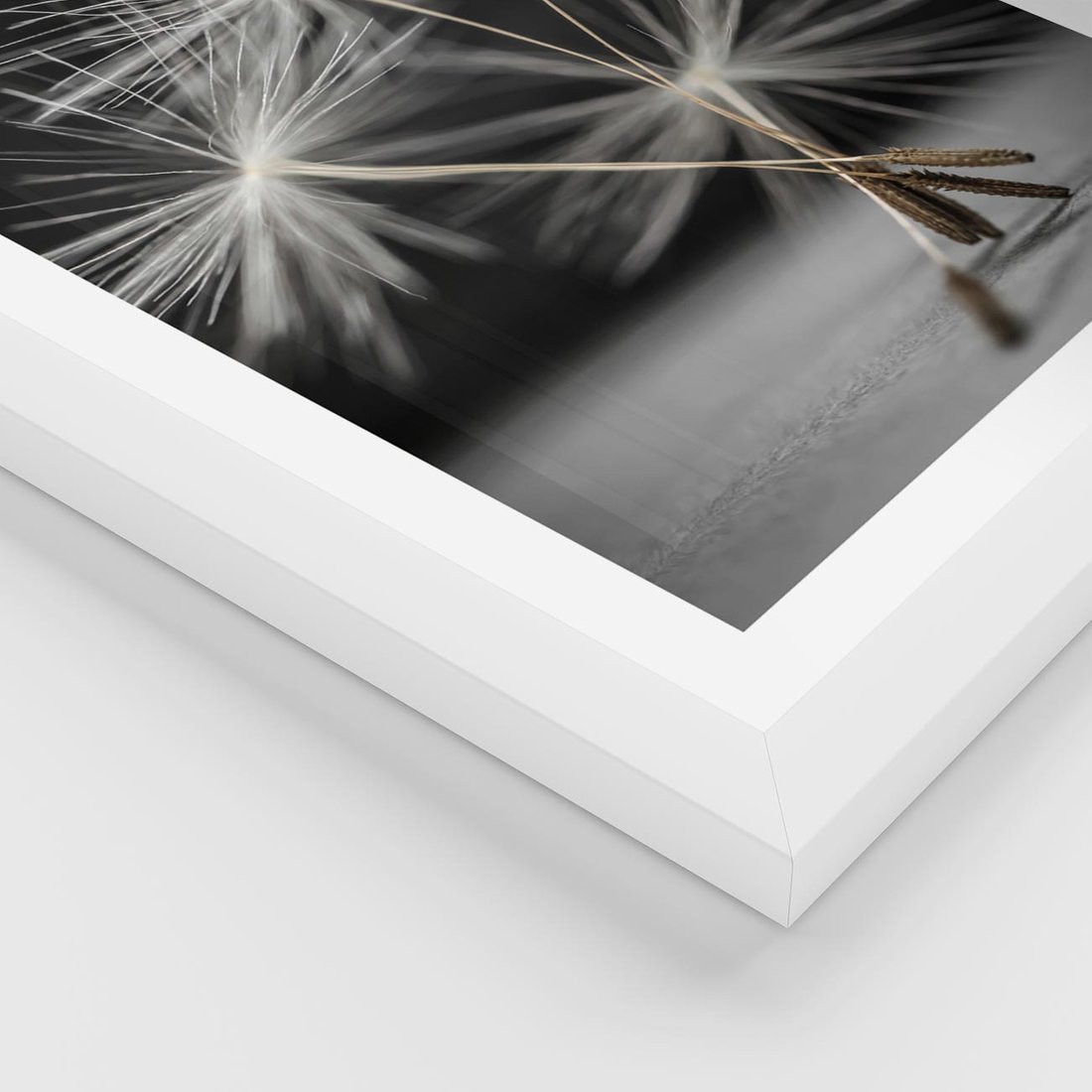 Plakat w ramie 40x50 - Delikatność dmuchawców zbliżenie - dmuchawce, zbliżenie - rama biała
