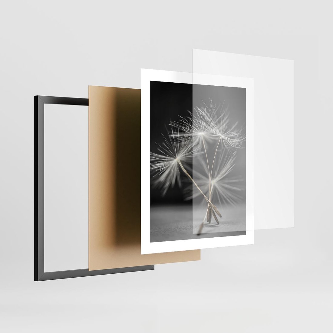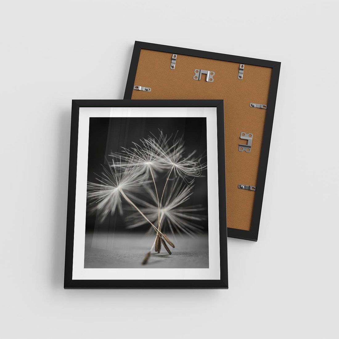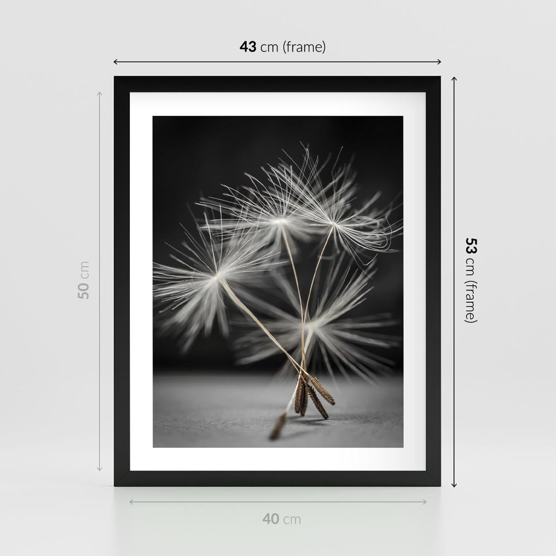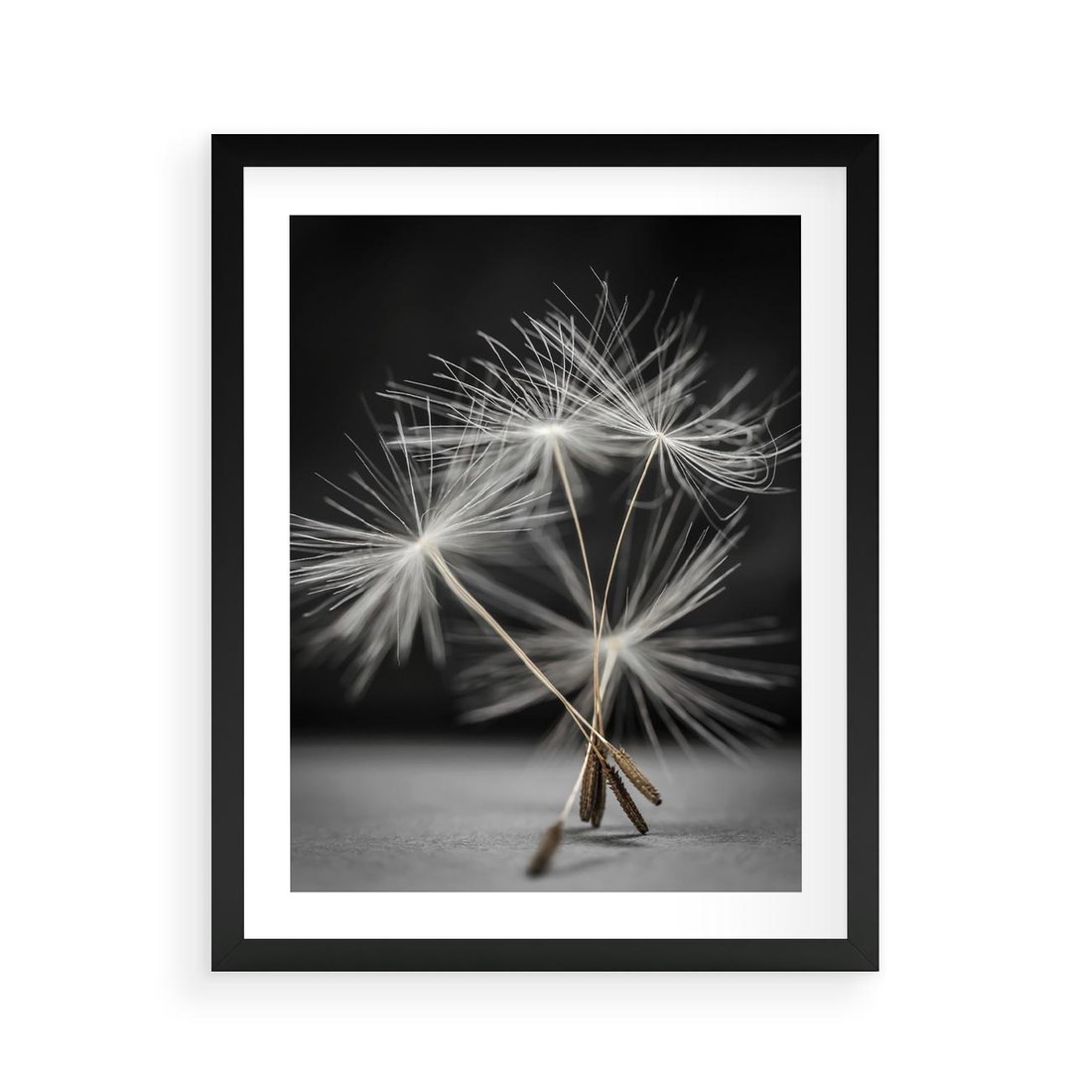 Plakat w ramie 40x50 - Delikatność dmuchawców zbliżenie - dmuchawce, zbliżenie - rama czarna
