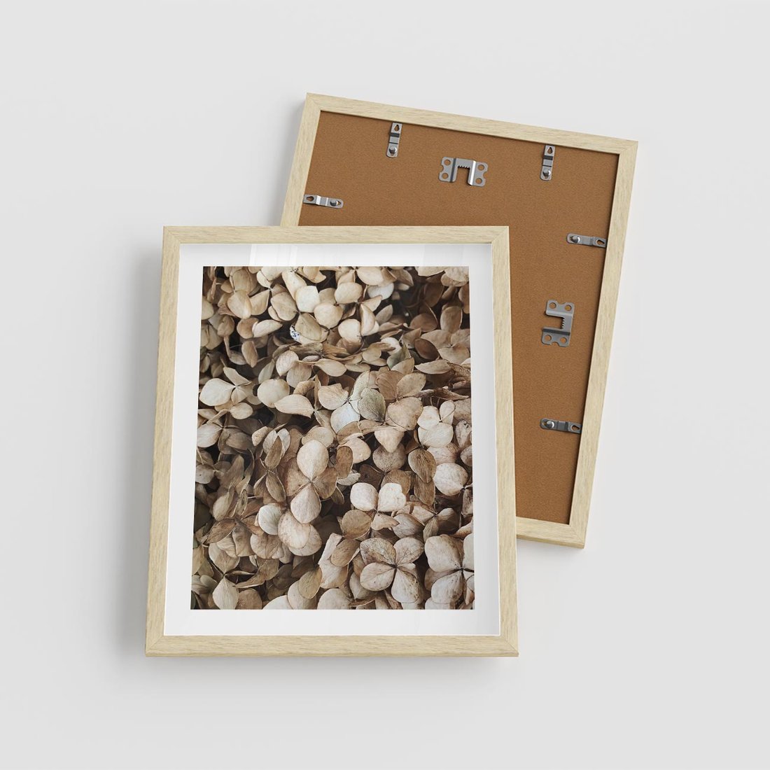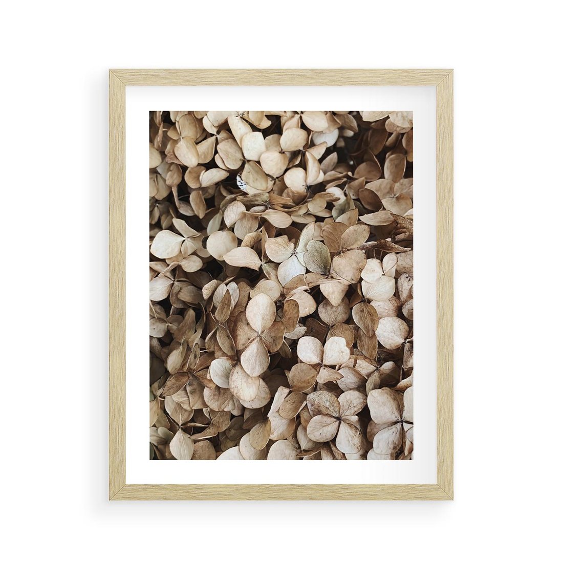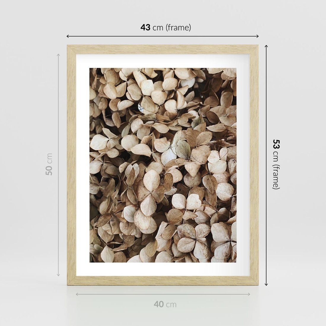 Plakat w ramie 40x50 - Delikatność Hortensji: Kompozycja Kwiatów w Beżu - hortensja, odcienie beżu - rama drewno