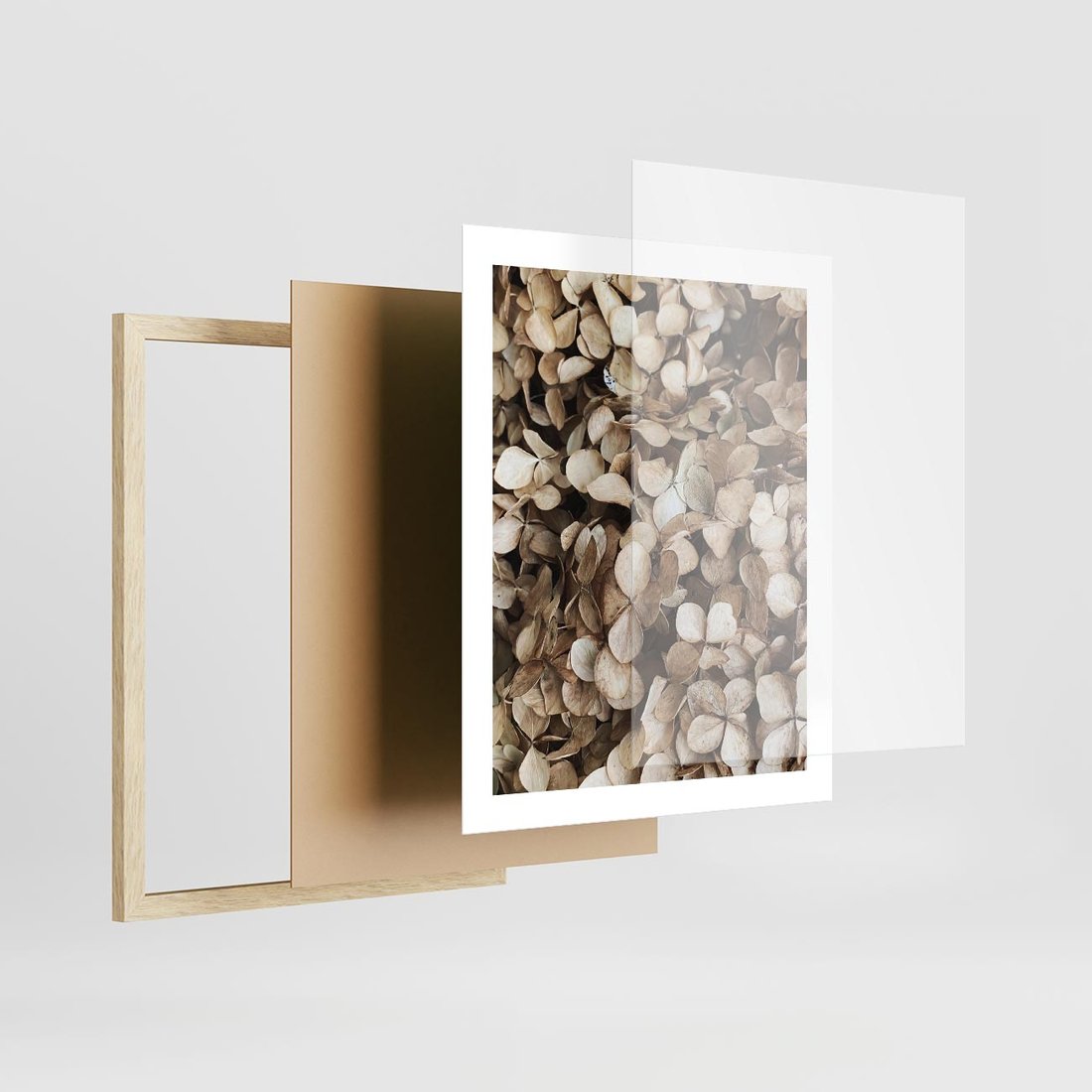 - Plakat w ramie 40x50 - Delikatność Hortensji: Kompozycja Kwiatów w Beżu