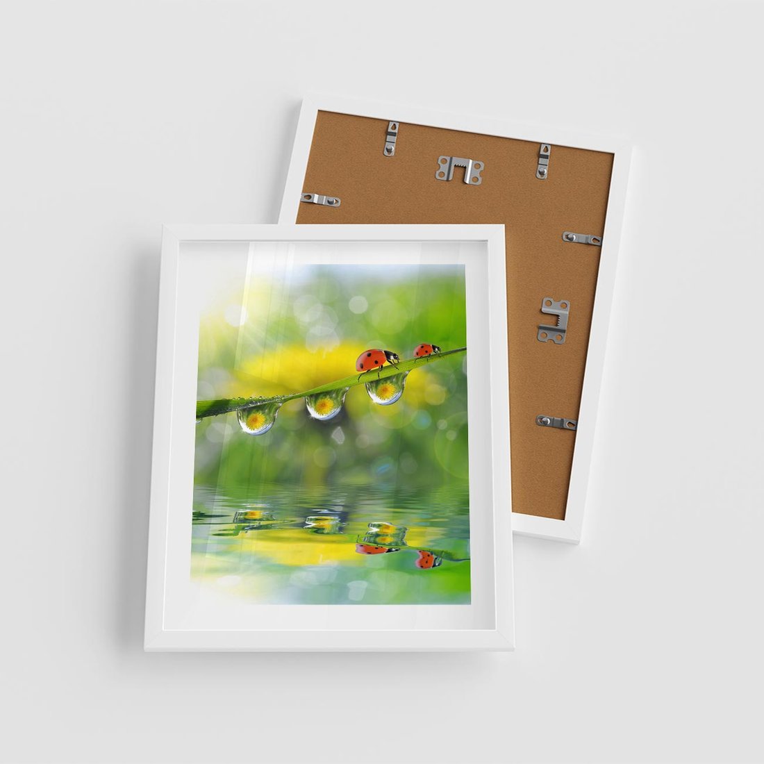 Plakat w ramie 40x50 - Deszczowa Biedronka - biedronka, deszcz - rama biała