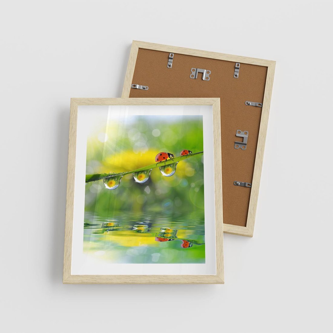 Plakat w ramie 40x50 - Deszczowa Biedronka - biedronka, deszcz - rama drewno