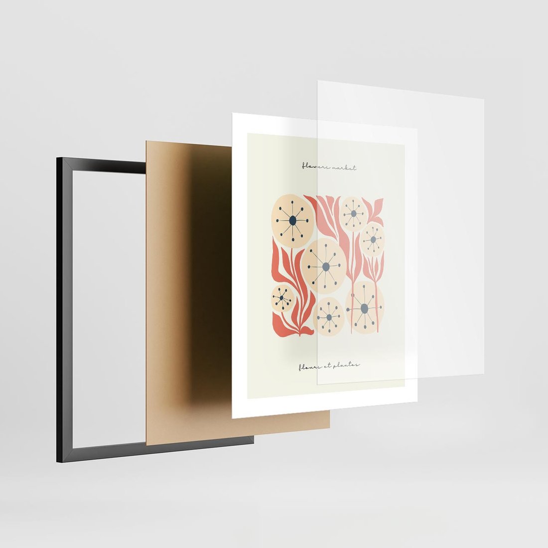 Ten nowoczesny plakat ukazuje dmuchawce w abstrakcyjnym stylu, zachwycając swoją minimalistyczną estetyką. Kompozycja przenosi nas w lekki i refleksyjny świat natury, tworząc wyjątkową wizję.