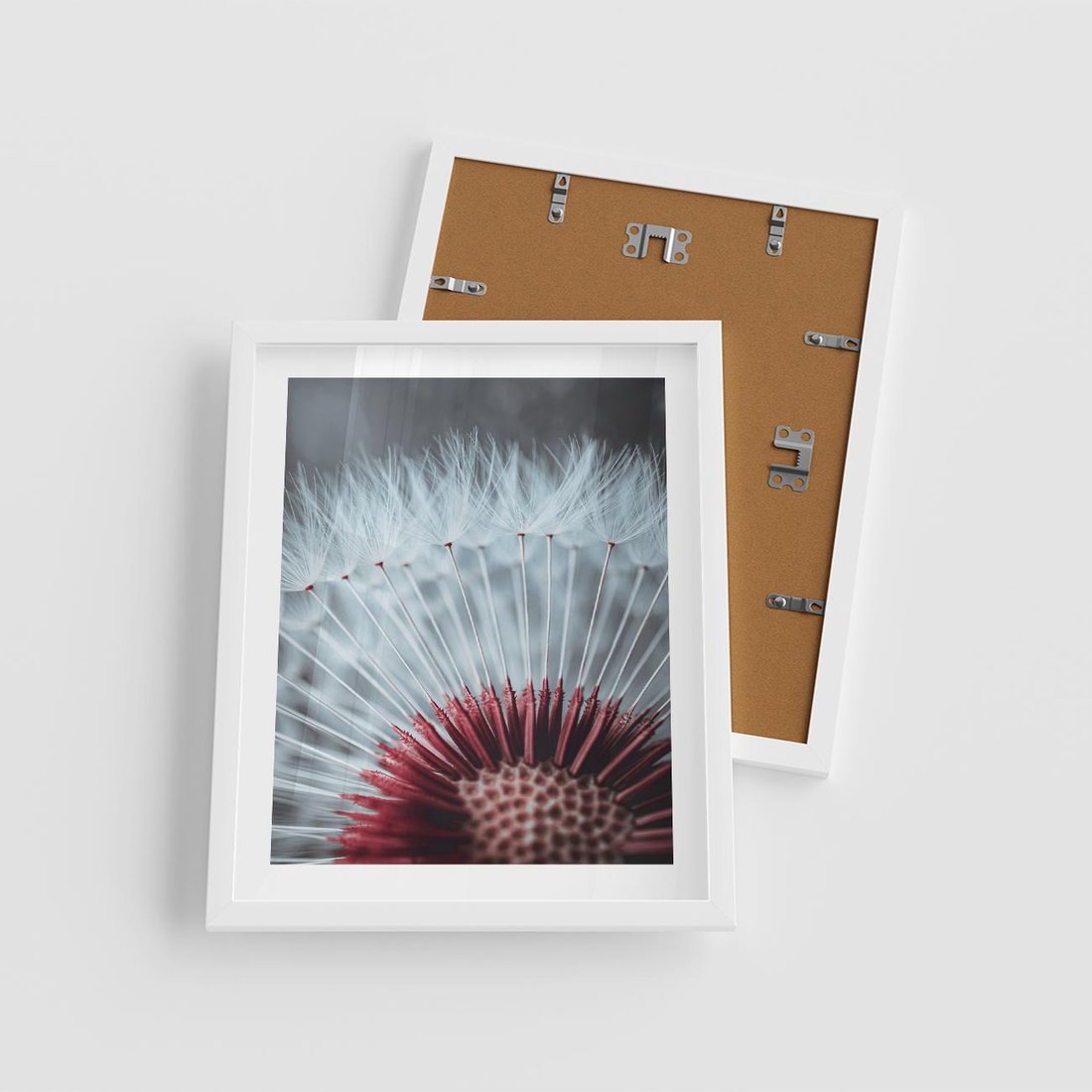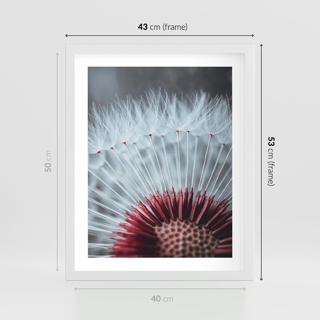 Plakat w ramie 40x50 - Dmuchawiec w Detalu - dmuchawiec, zdjęcie makro - rama biała