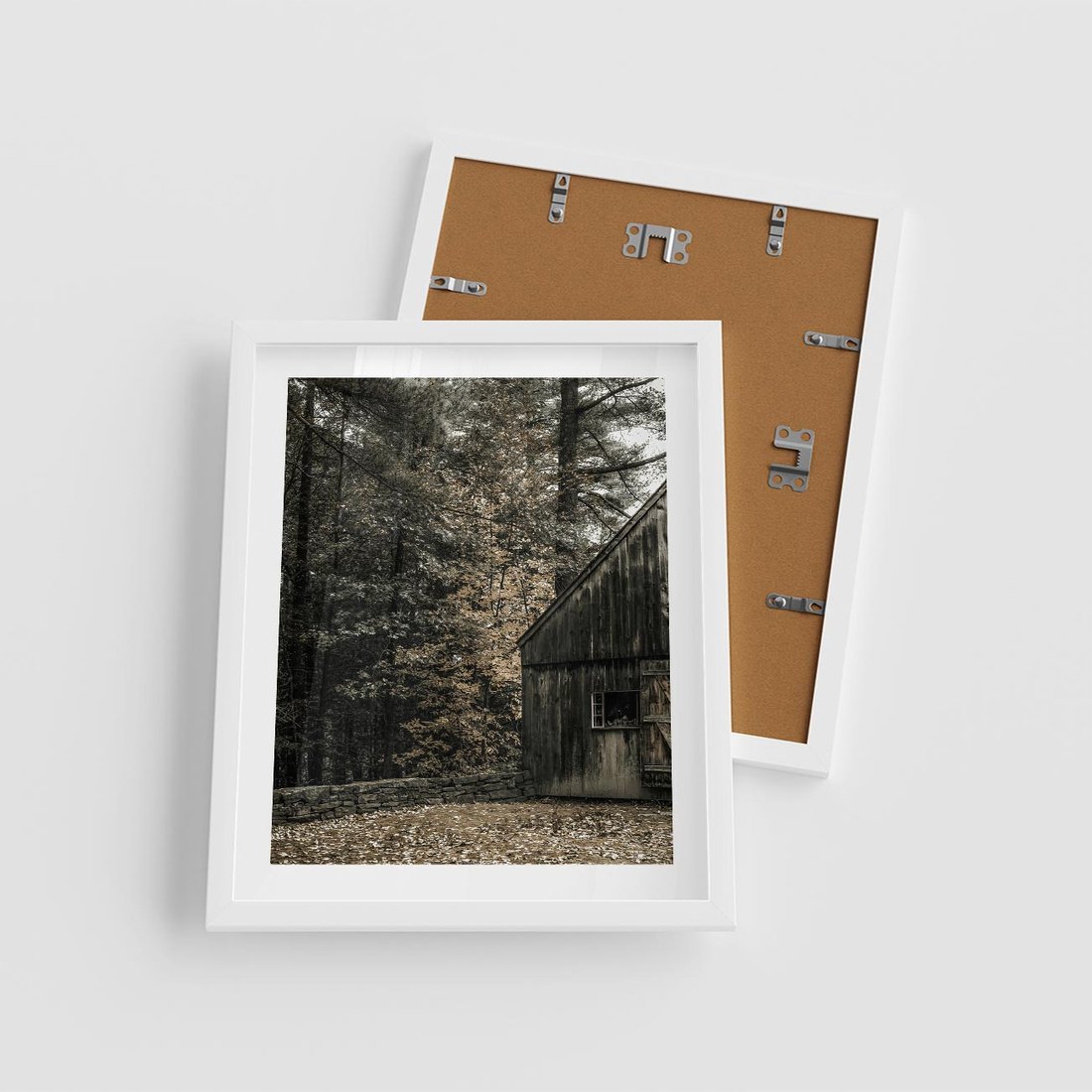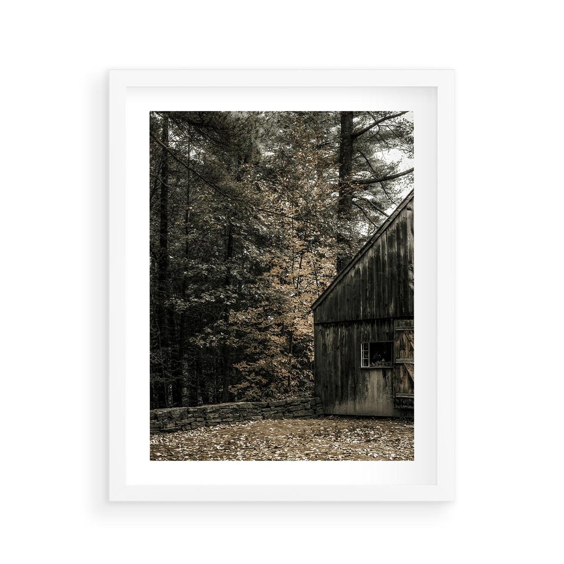 Plakat w ramie 40x50 - Dom w Lesie - chatka w lesie, górski domek - rama biała