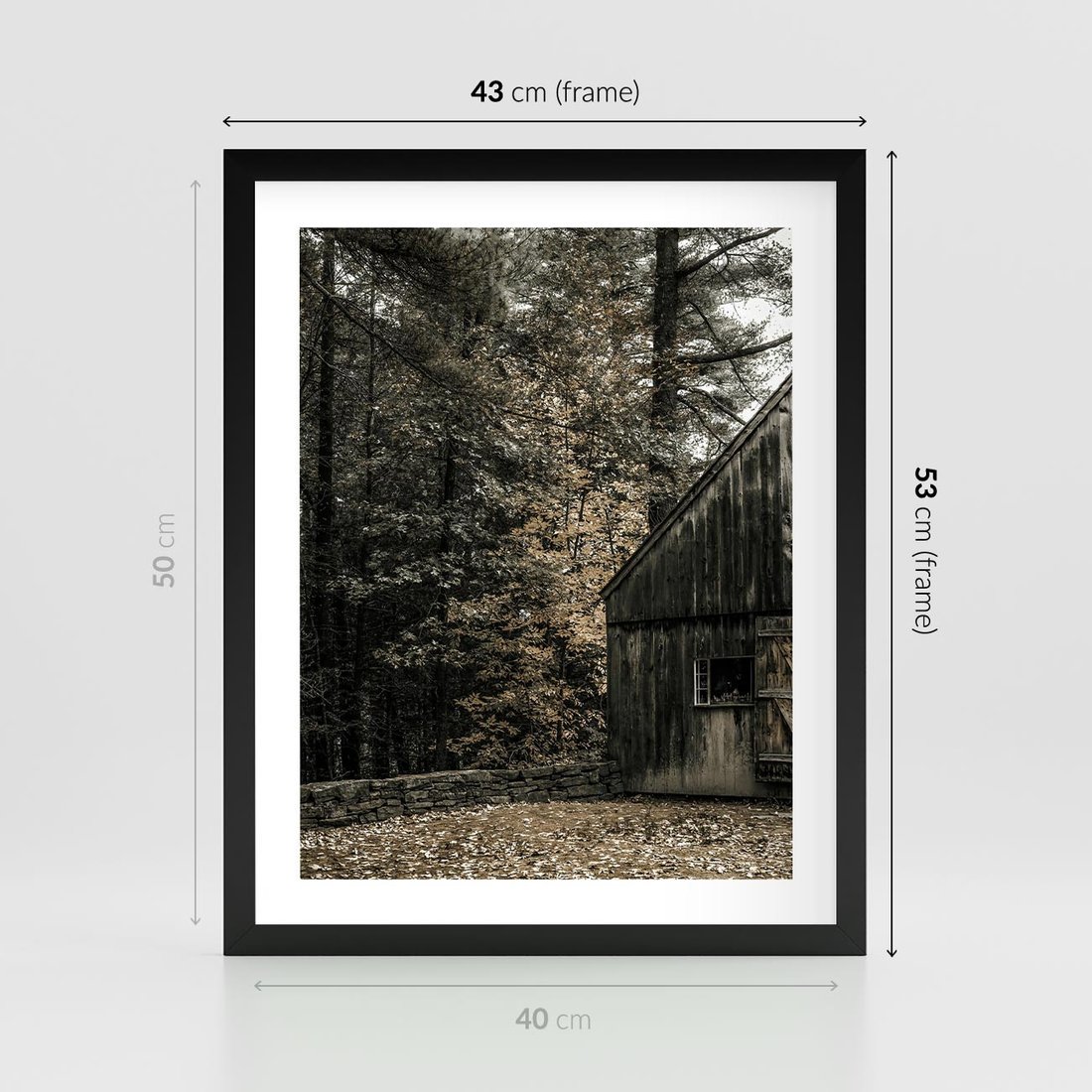 Plakat w ramie 40x50 - Dom w Lesie - chatka w lesie, górski domek - rama czarna