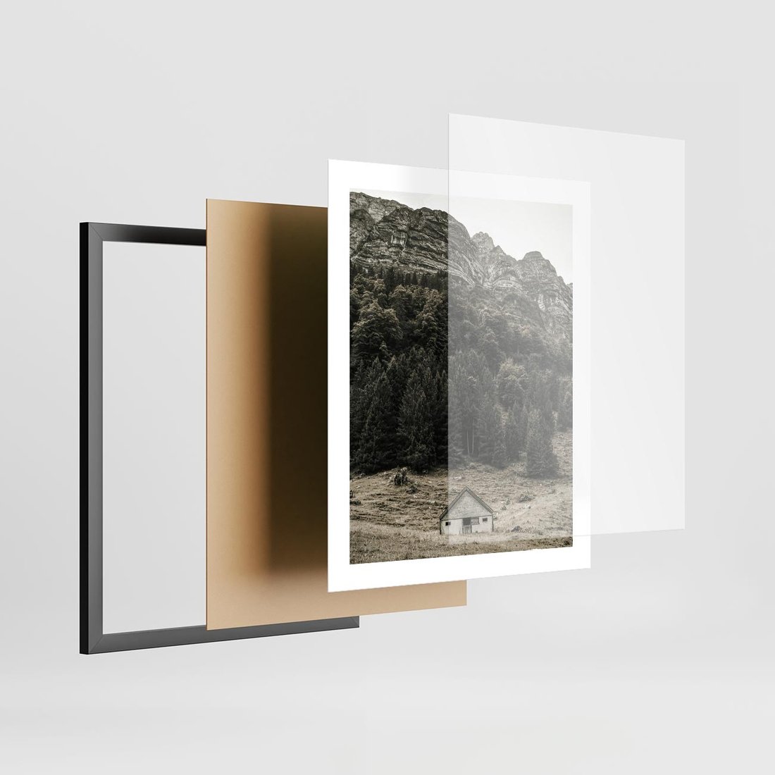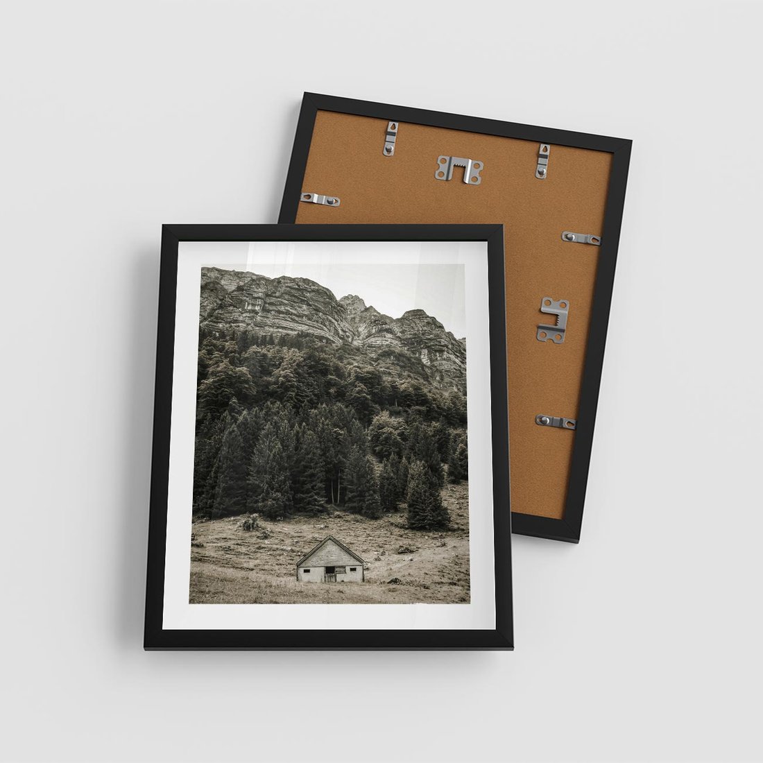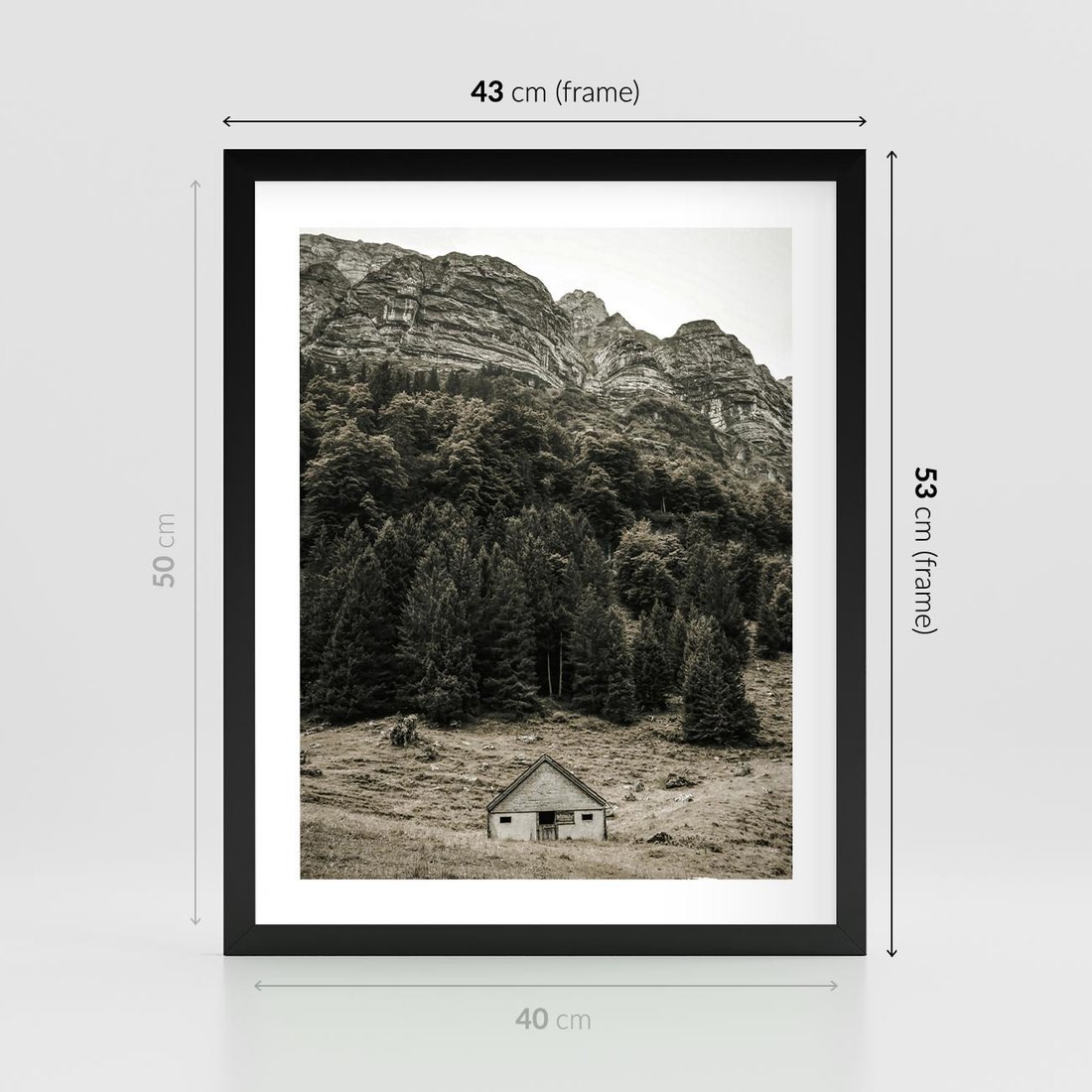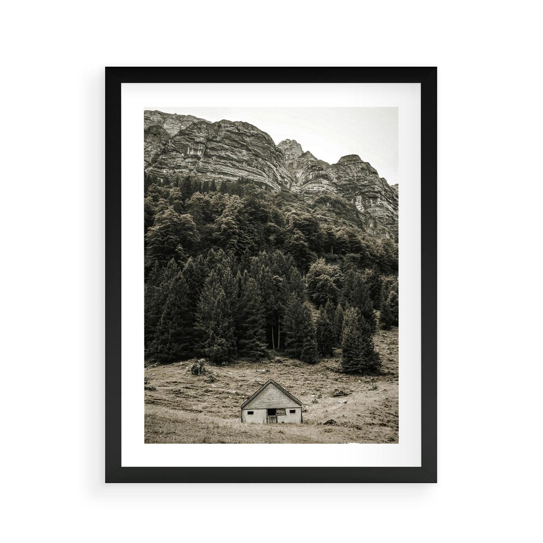 Plakat w ramie 40x50 - Dom w Odcieniach Natury - domek w górach, góry - rama czarna